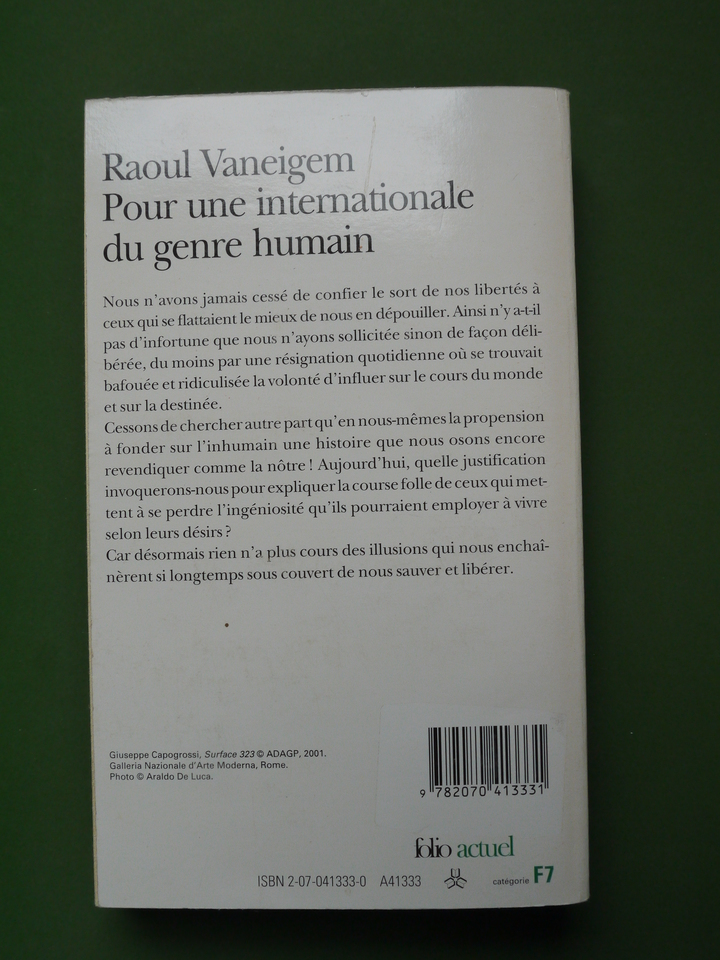 Soyez le premier à laisser votre avis sur “Pour une internationale du genre humain, Raoul Vaneigem, Folio, 2001”