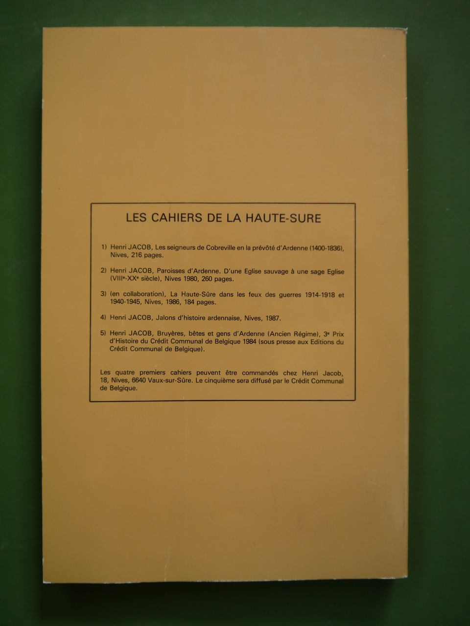 Jolie table des matières: la paysannerie au moyen-âge, la noblesse des champs au pays de Bastogne… L’abbé Henri Jacob est né le 19 juin 1935 à Neuvillers. Il a fait son Petit Séminaire à Bastogne et son Grand Séminaire à Namur. Il a été Vicaire à Neufchâteau et également Prêtre des Paroisses de Sevry, Nives et Tillet. Il est décédé à Lustin le 22 mai 2006.