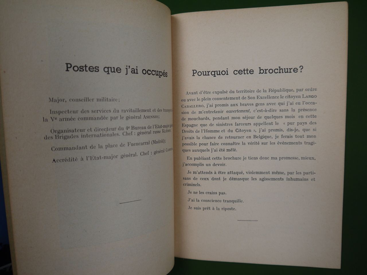 Un officier belge raconte sa mission au service de la République espagnole contrariée par les manoeuvres communistes. 39 pages.