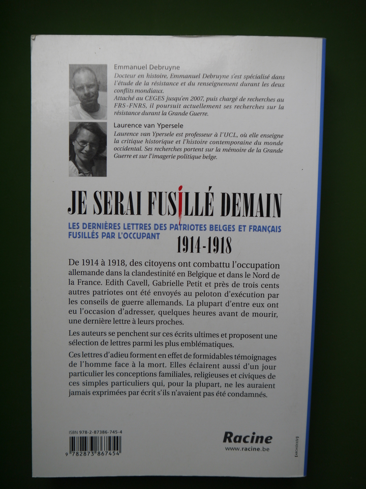 Je serai fusillé demain, Emmanuel Debruyne & Laurence van Ypersele, Racine, 2011