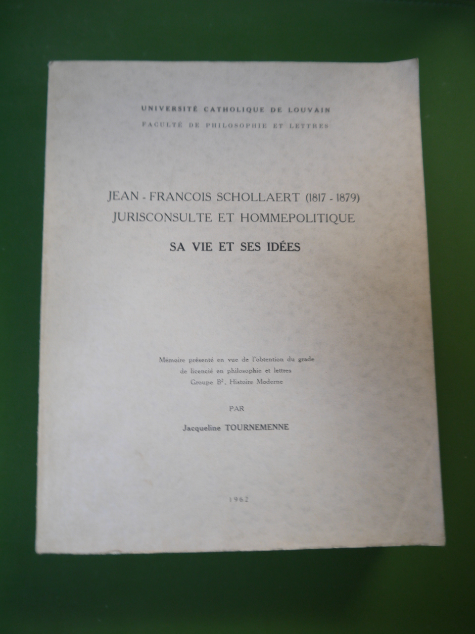 Epais mémoire présenté à la faculté de Philosophie et lettres sur un parlementaire né à Antwerpen.