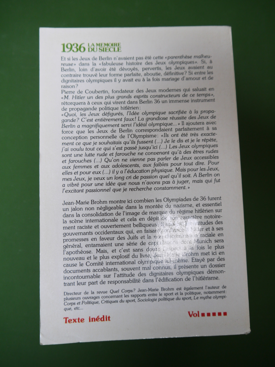 La mémoire du siècle 1936.