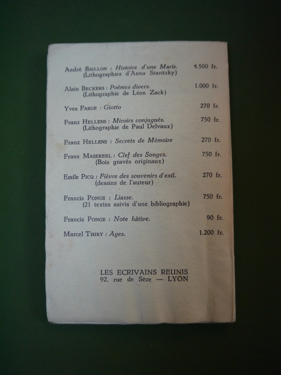Un peintre écrivain de Dour publié par un belge de Lyon, Armand Henneuse… Signé par l’auteur. Mouillures à mi-hauteur de toutes les pages de l’exemplaire proposé.