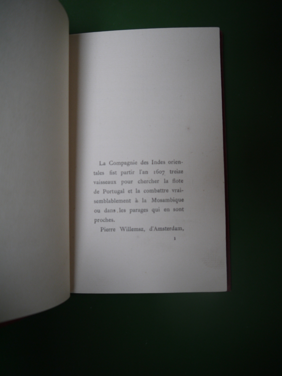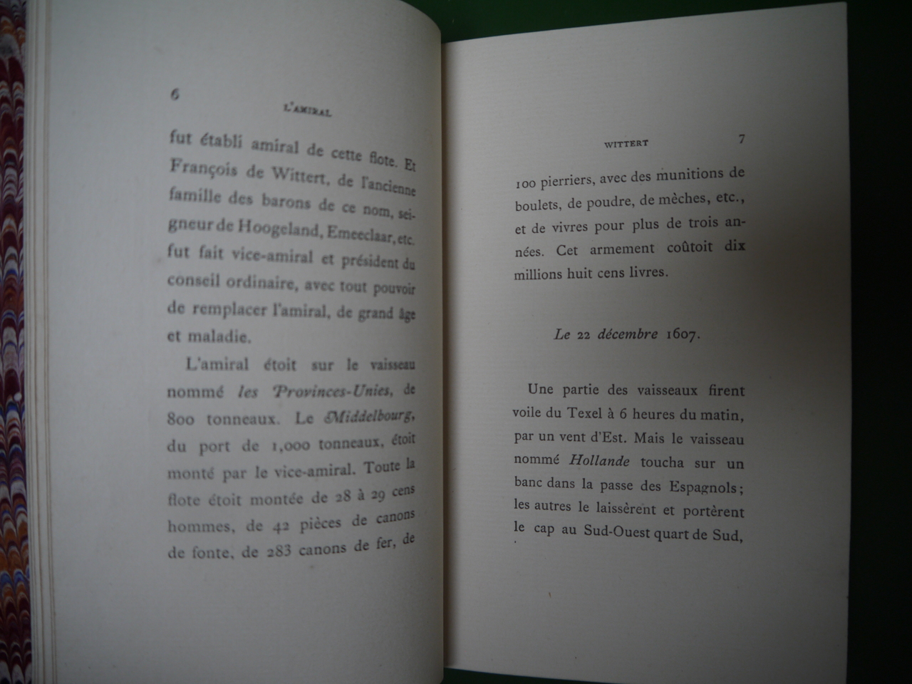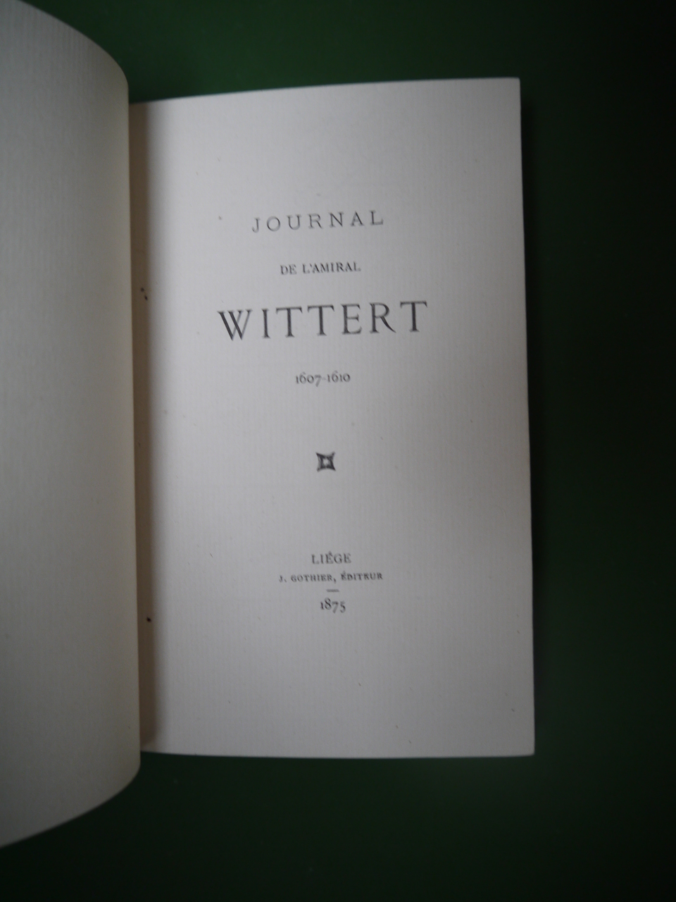 Journal d’un marin de la flotte hollandaise de la Compagnie des Indes orientales mort lors d’un affrontement avec la flotte espagnole. L’éditeur Gothier était établi à Liège.