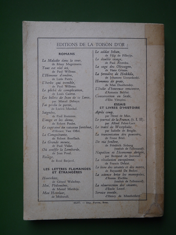Soyez le premier à laisser votre avis sur “Jours de famine et de détresse, Neel Doff, éditions de la Toison d’or, 1943”