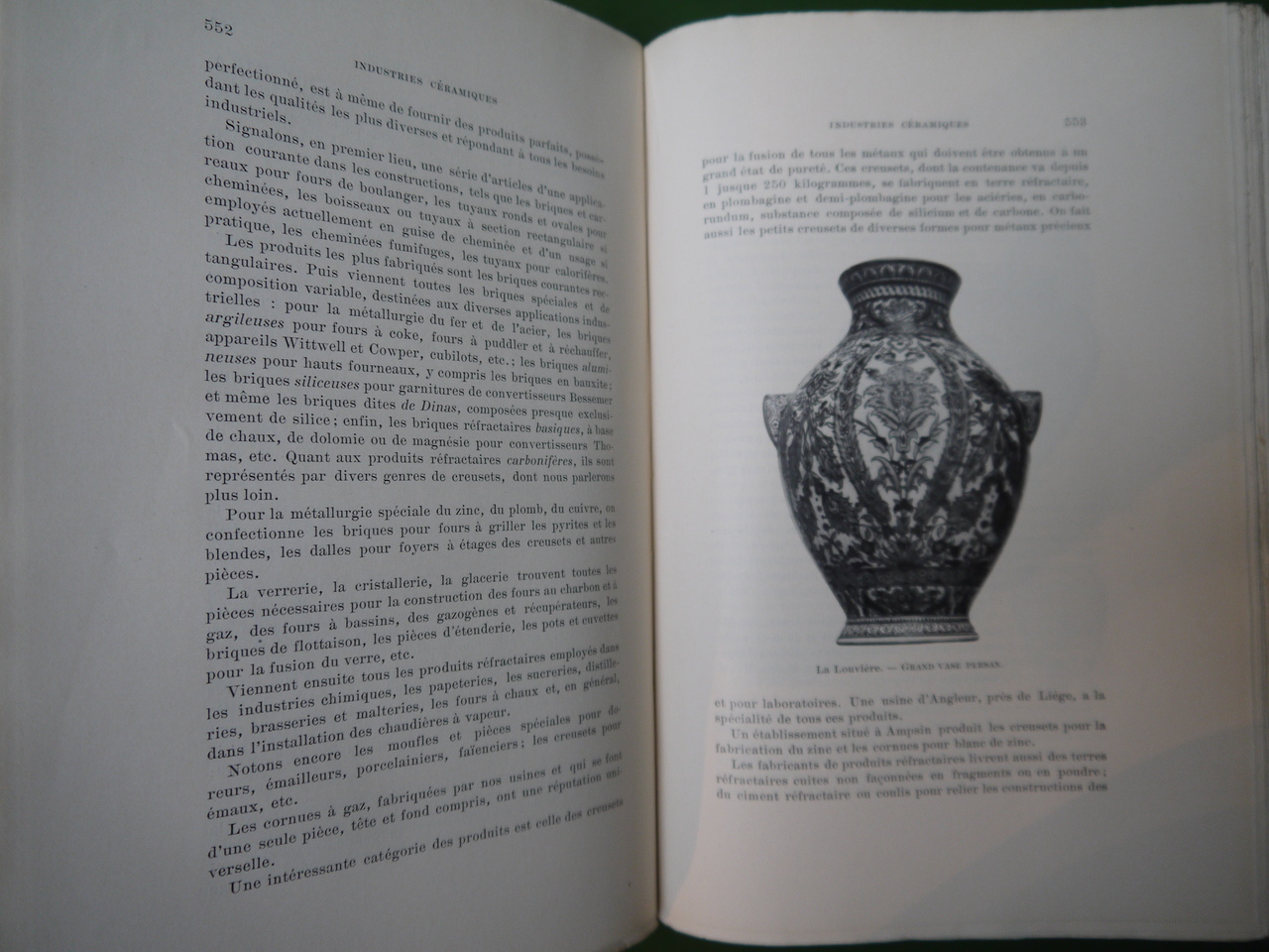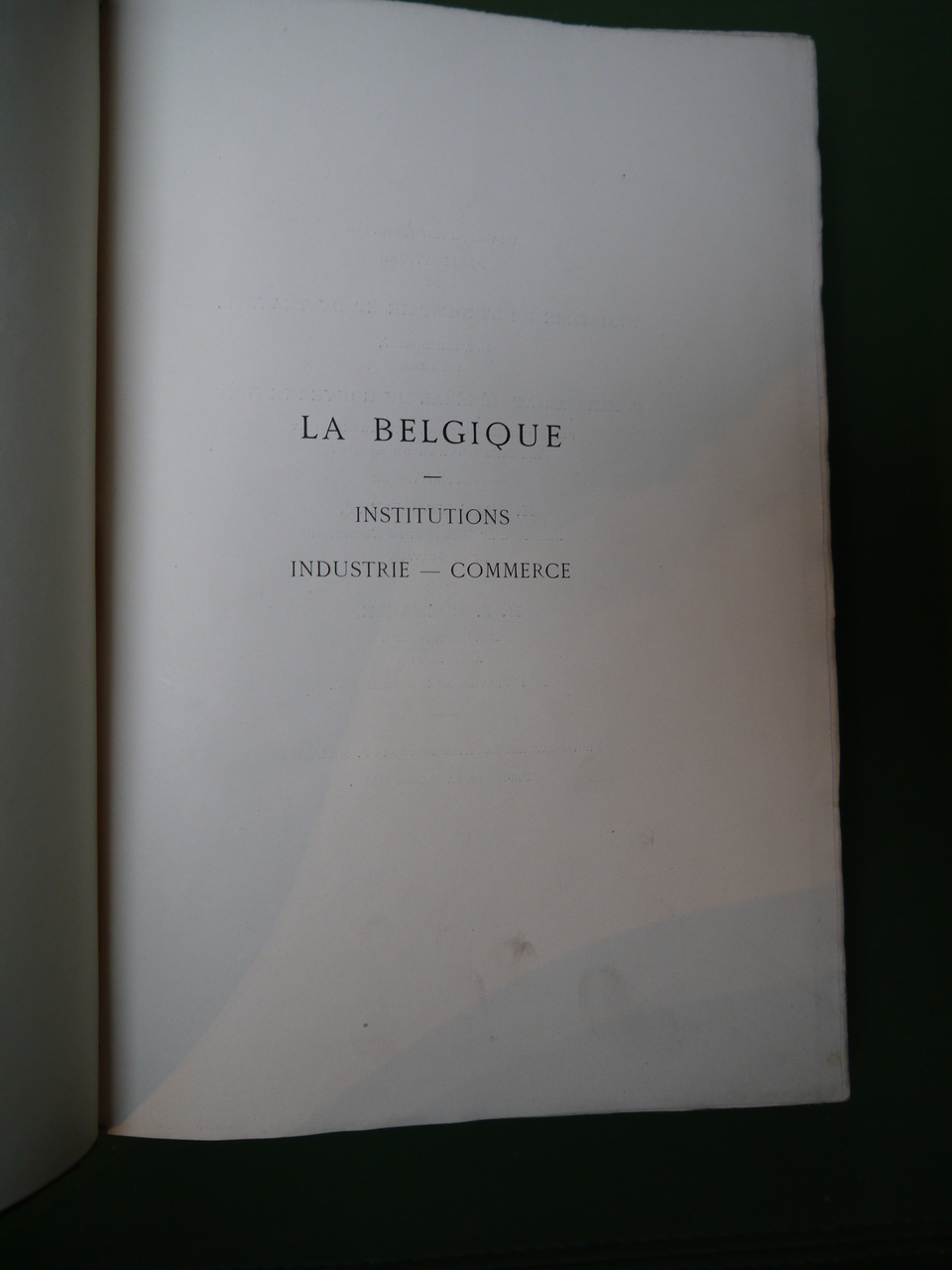 « Institutions – Industrie – Commerce ». Une publication du Ministère de l’industrie et du travail à l’occasion des 75 ans de la Belgique et de l’Exposition universelle de Liège. Nombreuses pages consacrées aux diverses industries du pays, dont la chaux, le verre, les armes, la savonnerie… ainsi qu’à l’état indépendant du Congo.
