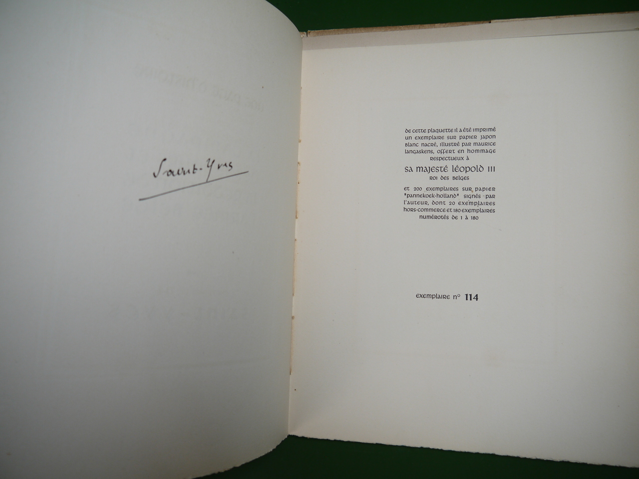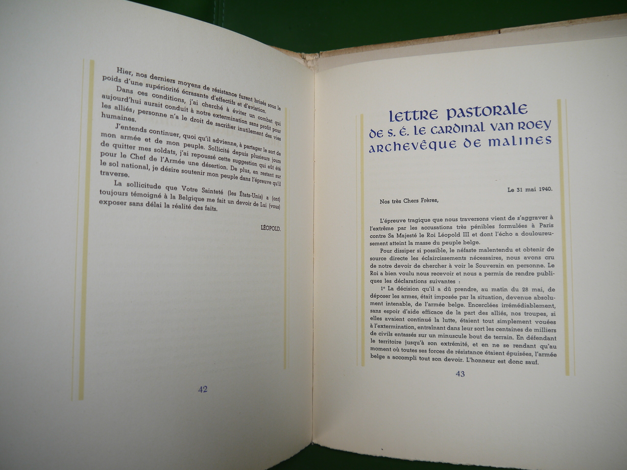 Un des nombreux textes de soutien à Léopold III… L’auteur est en réalité Paul Struye, connu pour ses notes sur le moral de la population belge pendant l’Occupation. Un des 200 exemplaires numérotés sur « Pannekoek-Holland » et signés par l’auteur, l’édition ordinaire étant visible ici…