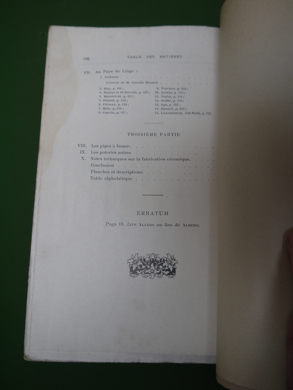 La céramique au pays de Liège, Florent Pholien, Aug. Bénard, non-daté