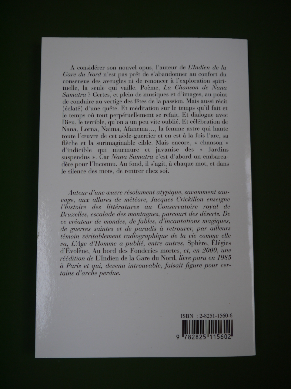 La chanson de Nana Sumatra, Jacques Crickillon, l’Age d’homme, 2001