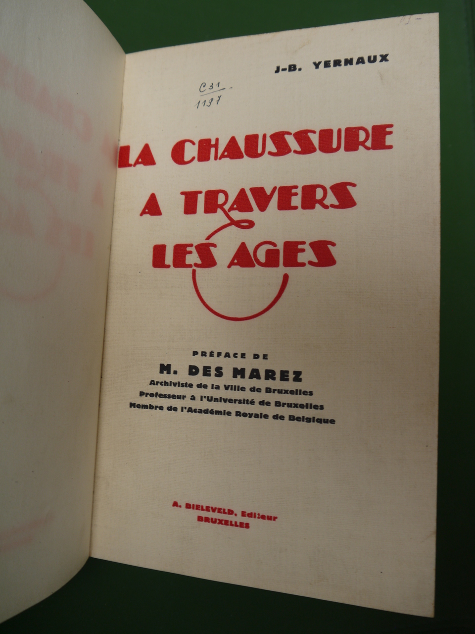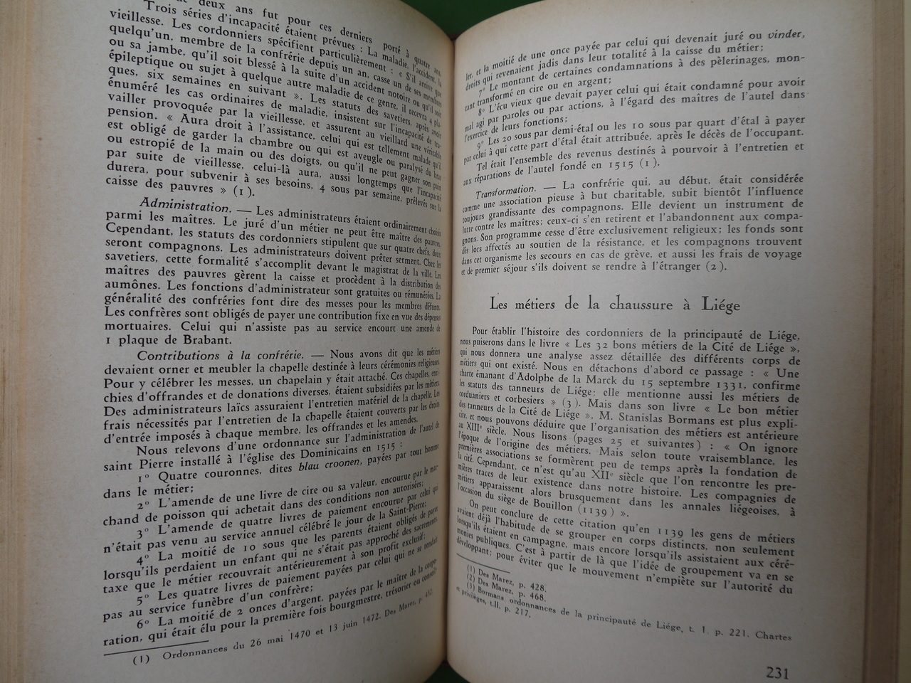 Un ouvrage de bibliothèque, emprunté la première fois en 1930… 338 pages, dont certaines consacrées aux « ordonnances, règlements, chartes et privilèges des métiers de la chaussure » à Paris, Tournai et Liège…