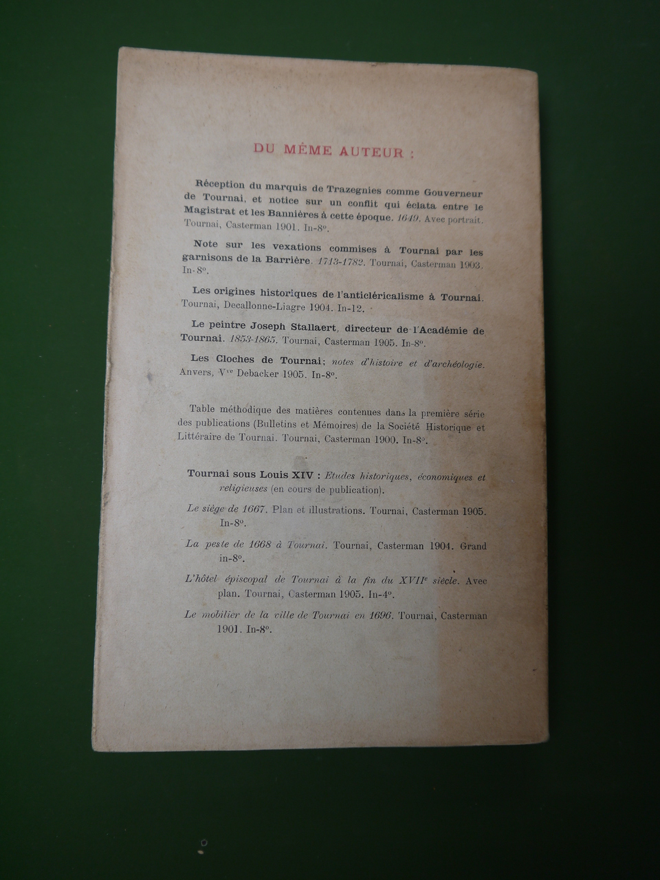 « Etudes historiques, économiques et religieuses sur Tournai durant le règne de Louis XIV ». 274 pages.