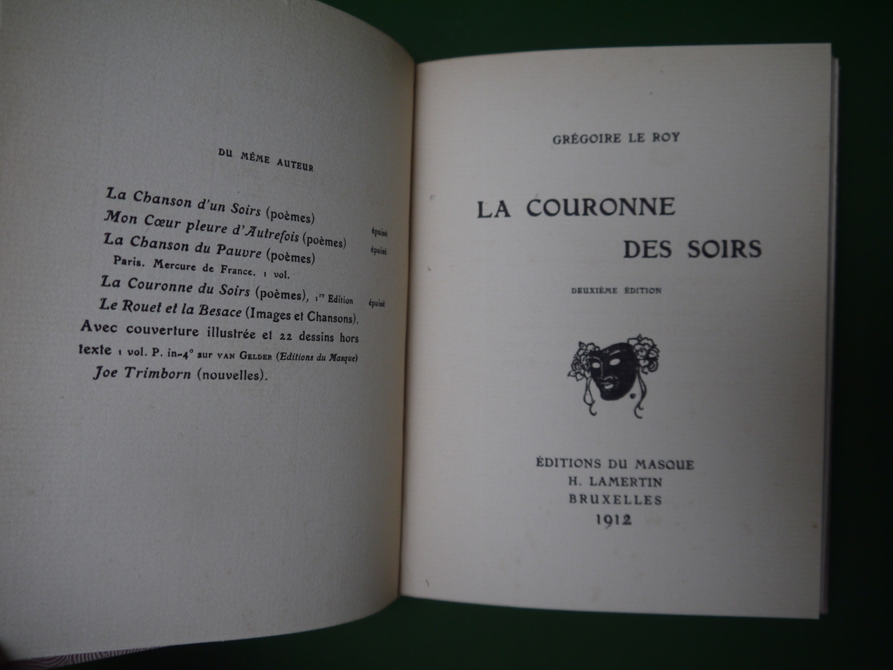 Wikipedia vous dit tout: « Gregorius Albertus Ferdinandus Leroy, dit Grégoire Le Roy, est un écrivain et graveur belge d’expression française né à Gand le et décédé à Ixelles le . » L’exemplaire proposé, relié, est de la seconde édition, la première datant de 1911.
