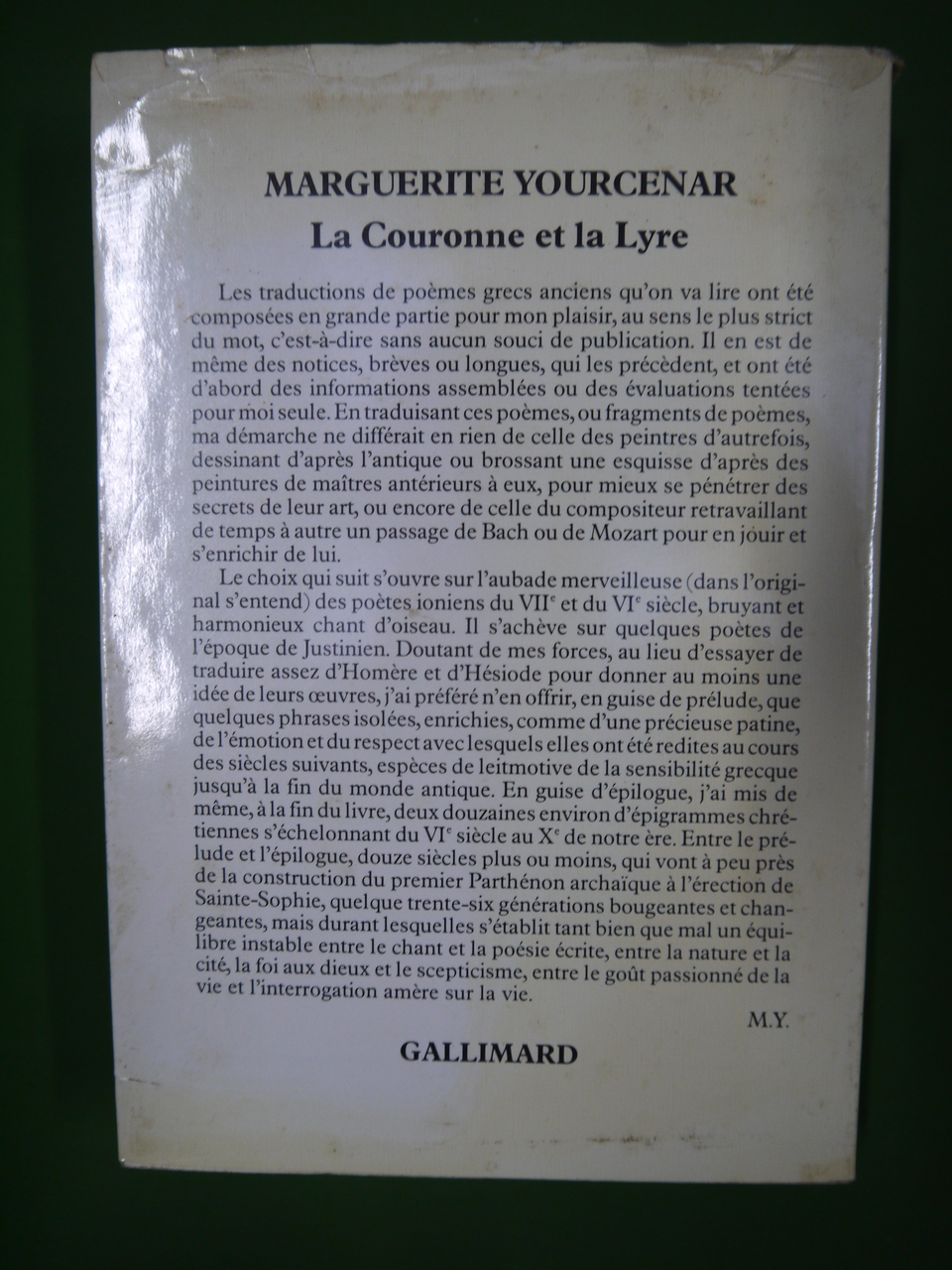 La couronne et la lyre, Marguerite Yourcenar, Gallimard, 1979