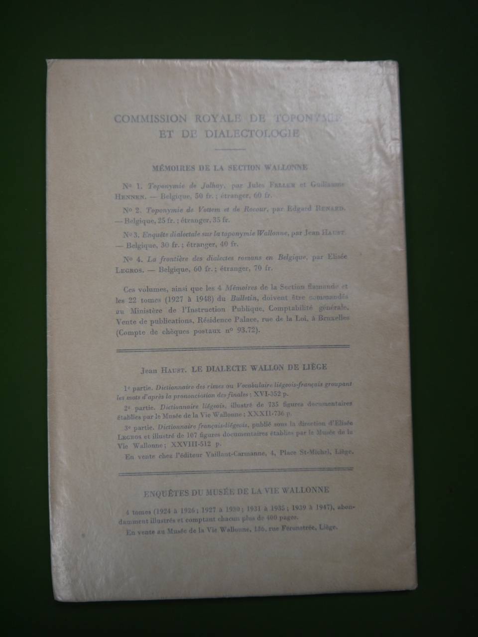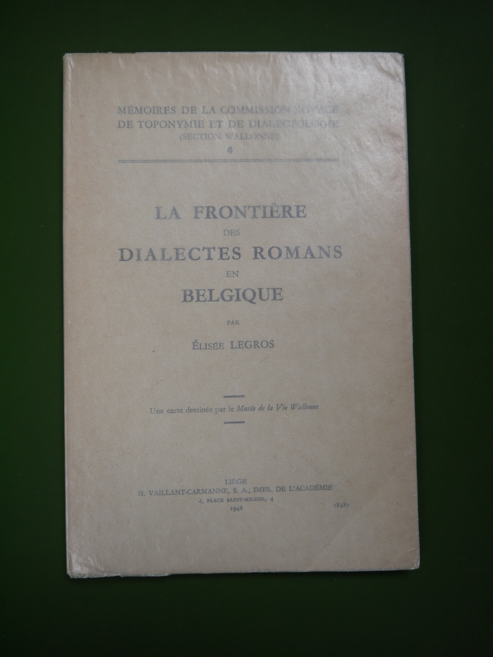 La frontière des dialectes romans en Belgique, Elisée Legros, H. Vaillant-Carmanne, 1948