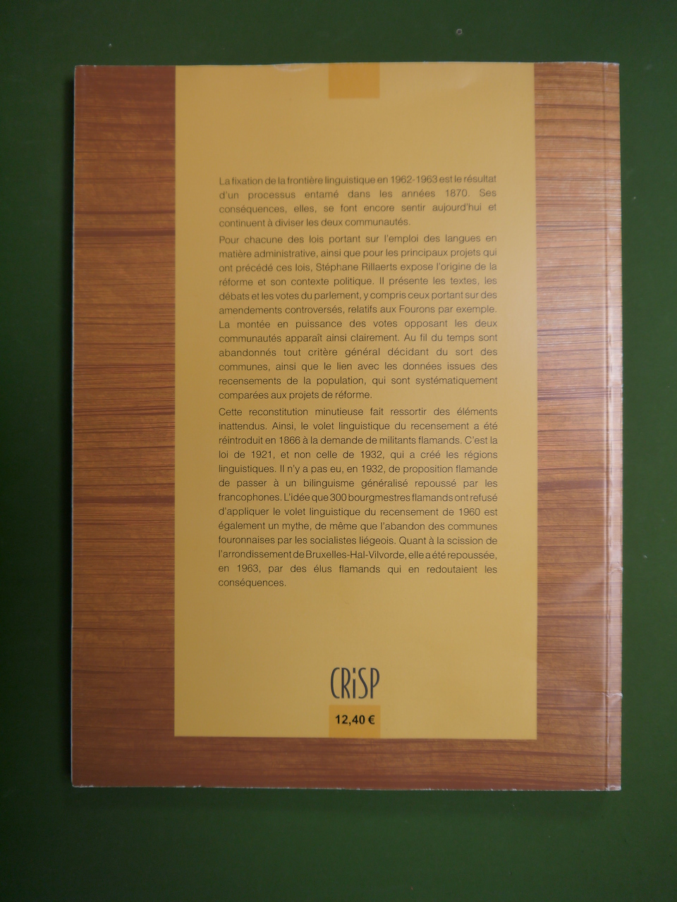 La frontière linguistique 1878-1963, Stephane Rillaerts, CRISP, 2010