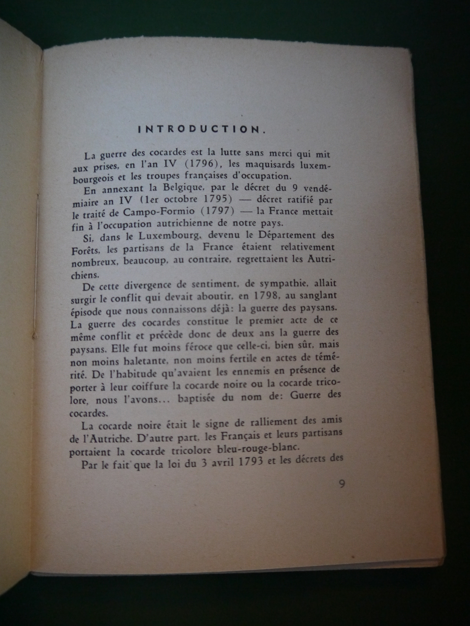 Une parution de la fin des années 1940, selon toute vraisemblance. La guerre des cocardes opposa des luxembourgeois nostalgiques de l’Autriche aux nombreux partisans du pouvoir français. L’auteur était de Bastogne semble-t-il.