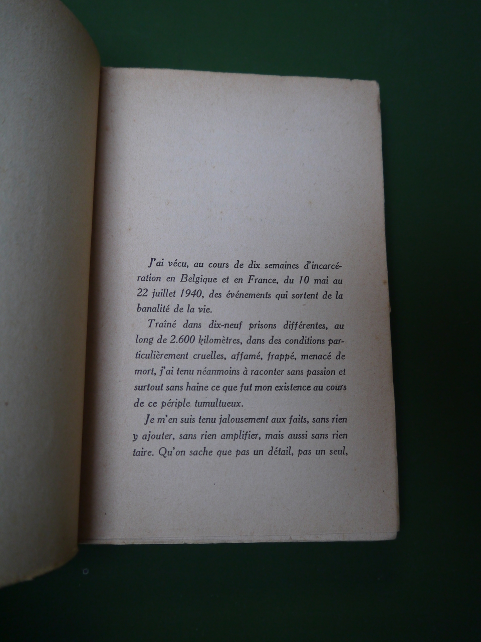 « J’ai vécu, au cours de dix semaines d’incarcération en Belgique et en France, du 10 mai au 22 juillet 1940, des événements qui sortent de la banalité de la vie ».