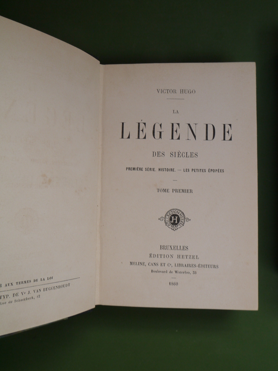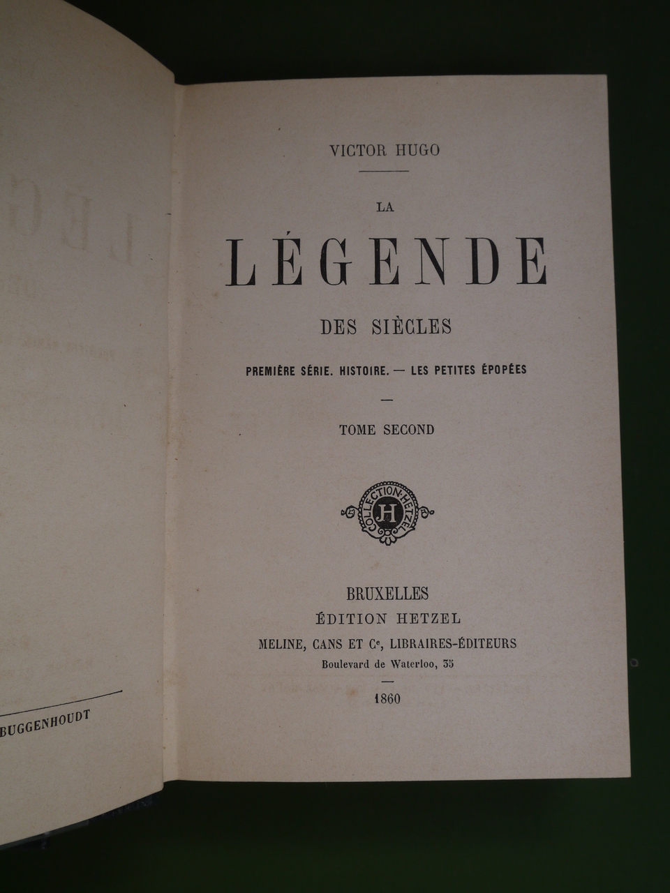 Un titre paru à Bruxelles avant Paris, mais en 1859. Le tirage bruxellois de 1859 aurait été jugé médiocre par Hugo lui-même et réservé à l’étranger. L’exemplaire proposé, datant de 1860, semble d’excellente qualité.