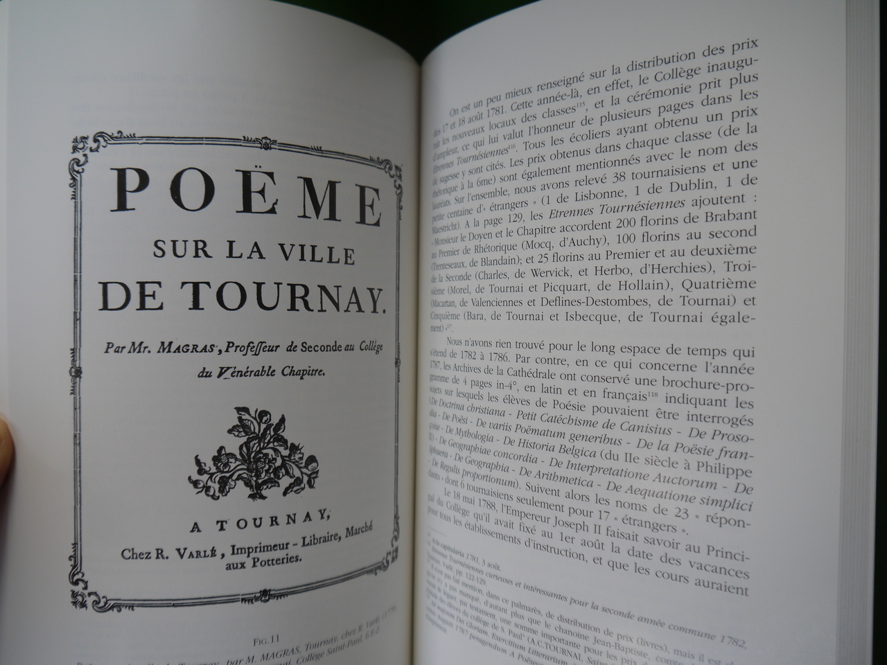 Sous-titre: « Un collège à Tournai 1773-1830 ». « Publications extraordinaires de la société royale d’histoire et d’archéologie de Tournai, tome VI. »
