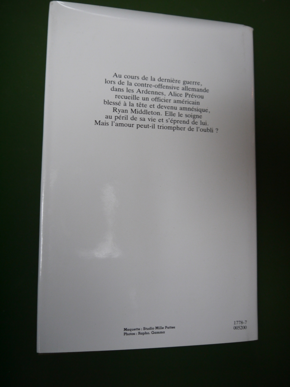 Une romance entre une jeune ardennaise et un soldat US amnésique… On suppose assez vite que l’auteure n’a jamais mis les pieds en Belgique.