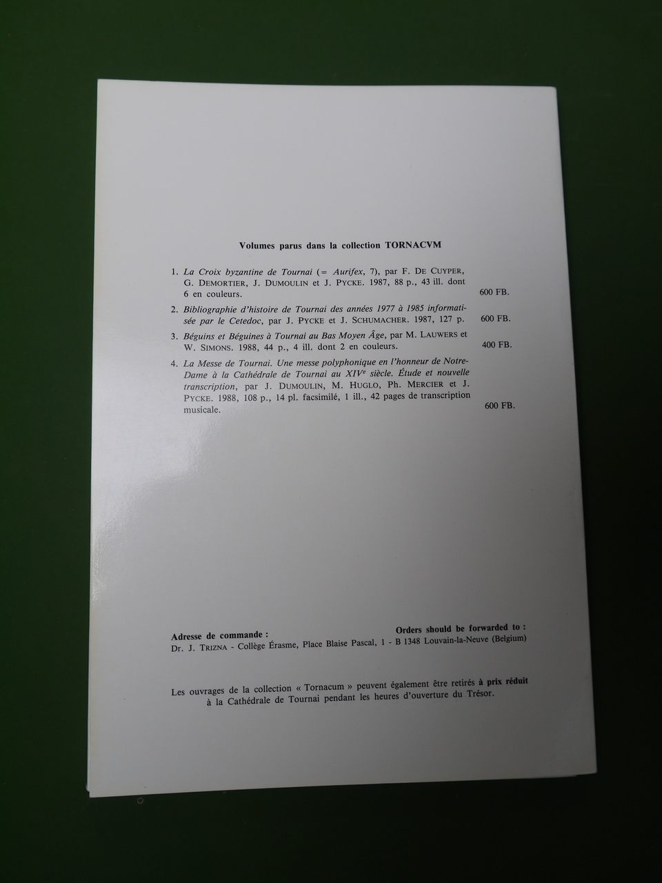 « Tornacum 4 ». 107 pages. « Une messe polyphonique en l’honneur de Notre-Dame à la Cathédrale de Tournai au XIVe siècle – étude et nouvelle transcription ».