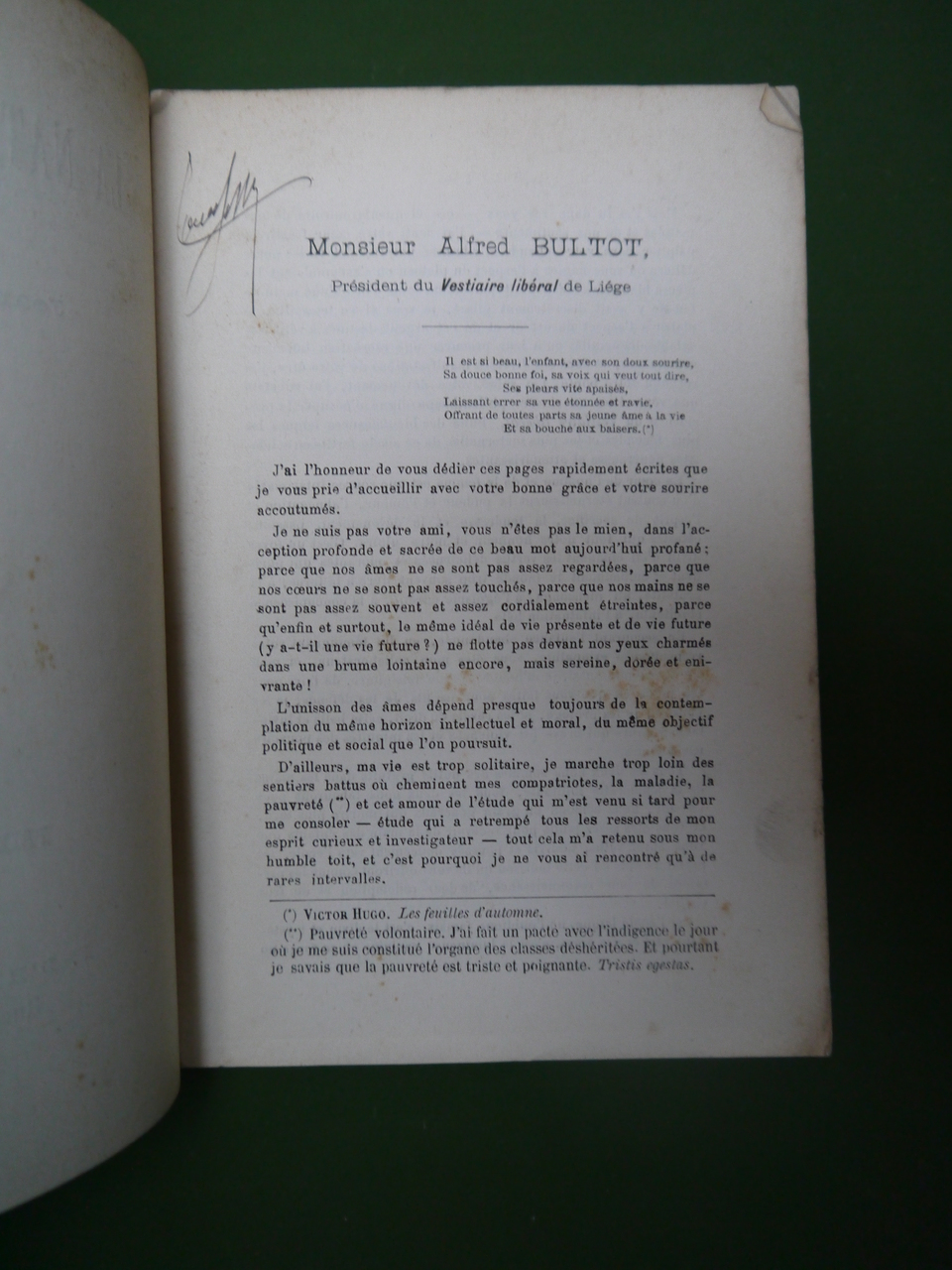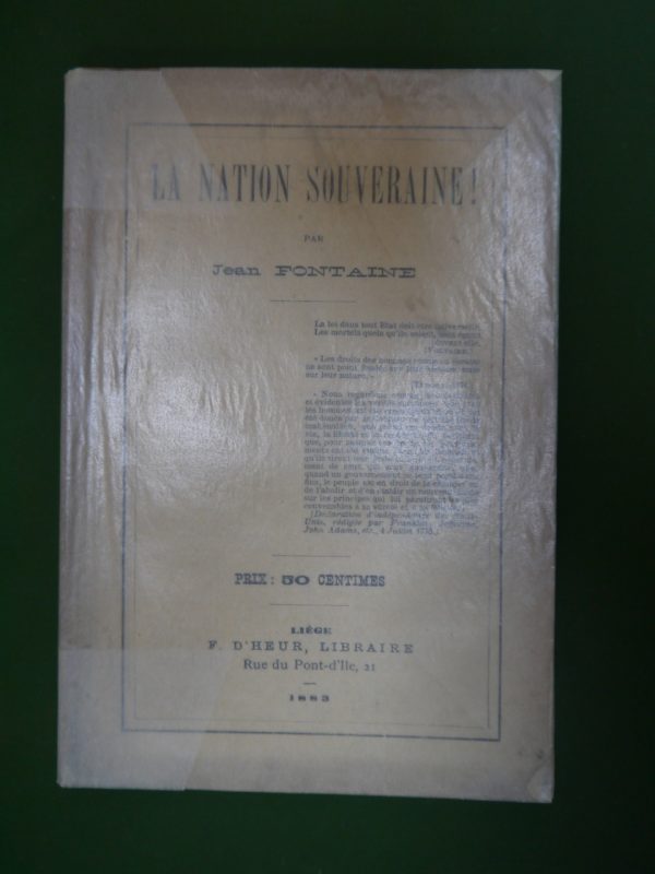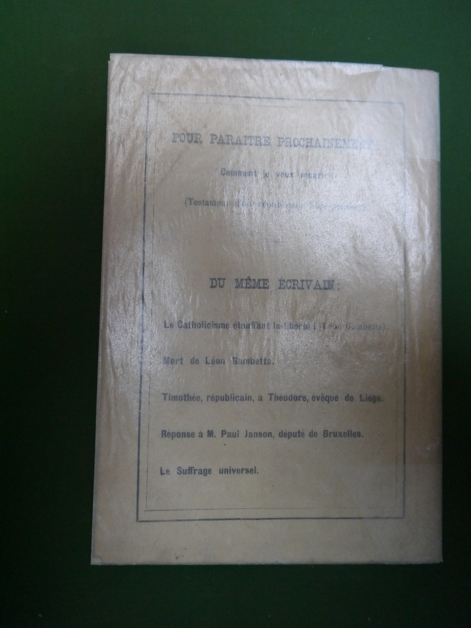 L’auteur, vraisemblablement liégeois (comme l’imprimeur de cette plaquette de 86 pages) se définit comme un « républicain libre-penseur »…