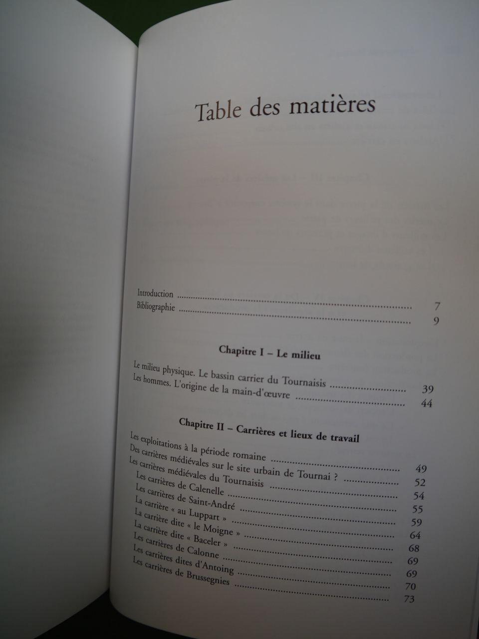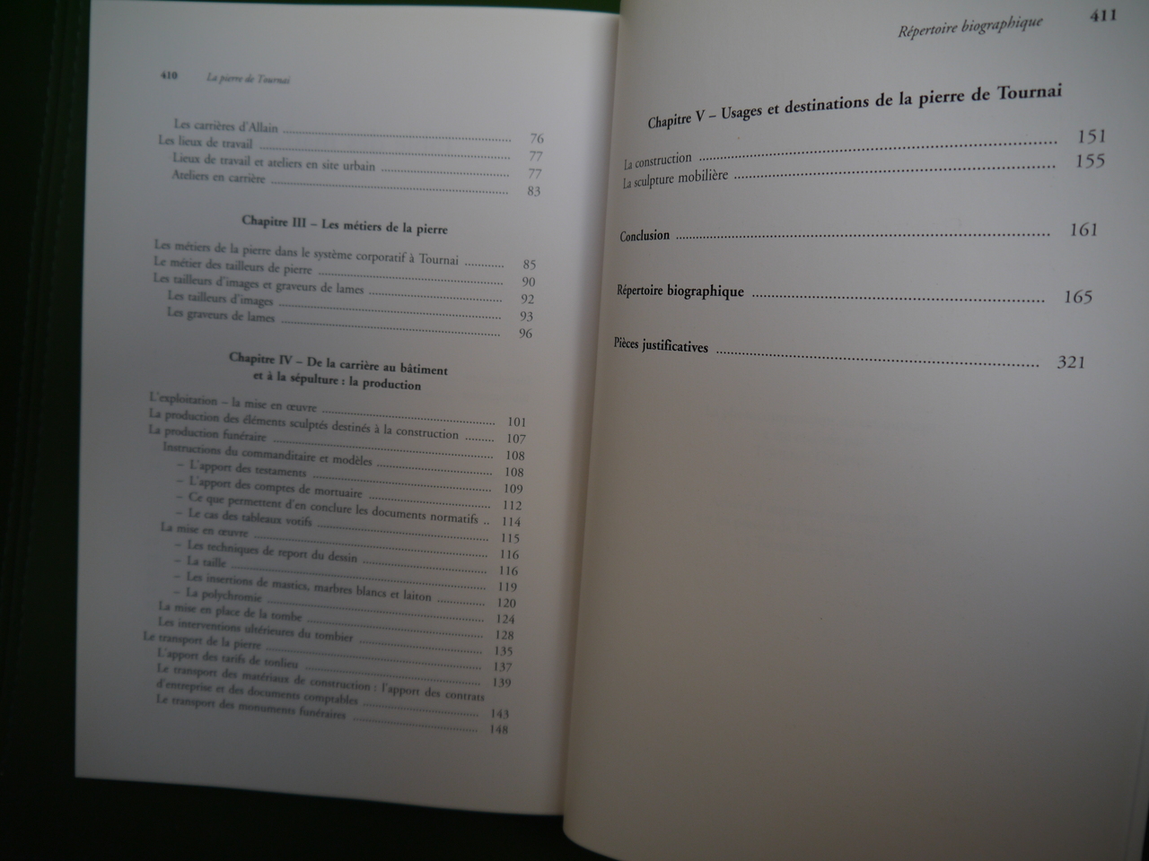 « Tournai art et histoire volume 8 – Son exploitation et son usage aux XIIIe, XIVe et XVe siècles ». Comprend un imposant « répertoire biographique des exploitants de carrière, tailleurs de pierre, graveurs de lames et tailleurs d’images tournaisiennes ».