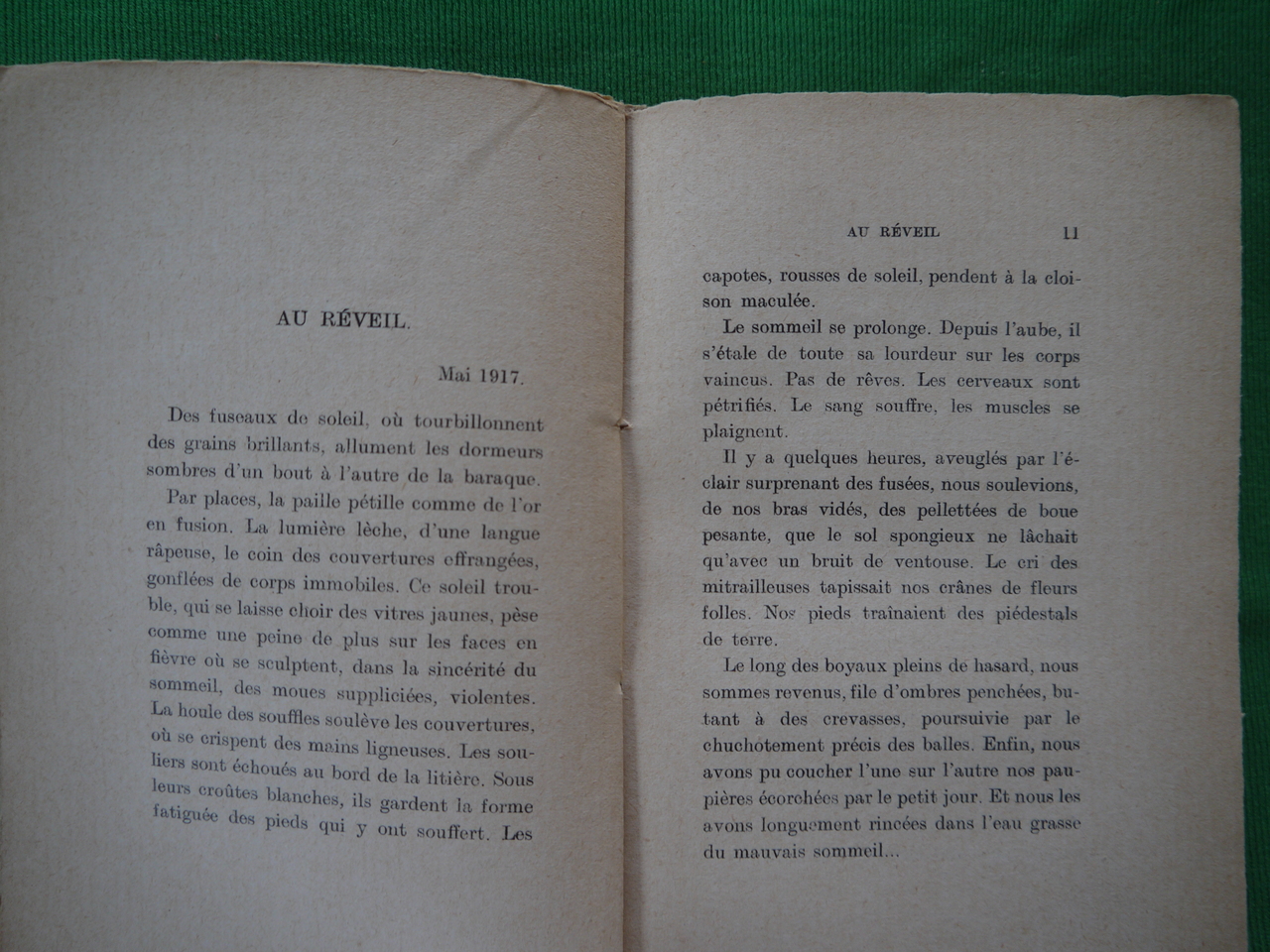 Un magnifique texte sous-titré « Paysages de la guerre ». « Ce qu’on trouvera ici, c’est le souvenir des heures où la guerre reculait d’un pas autour de nous, où seule sa menace nous surplombait, gonflant de sens vital les plus simples choses. »