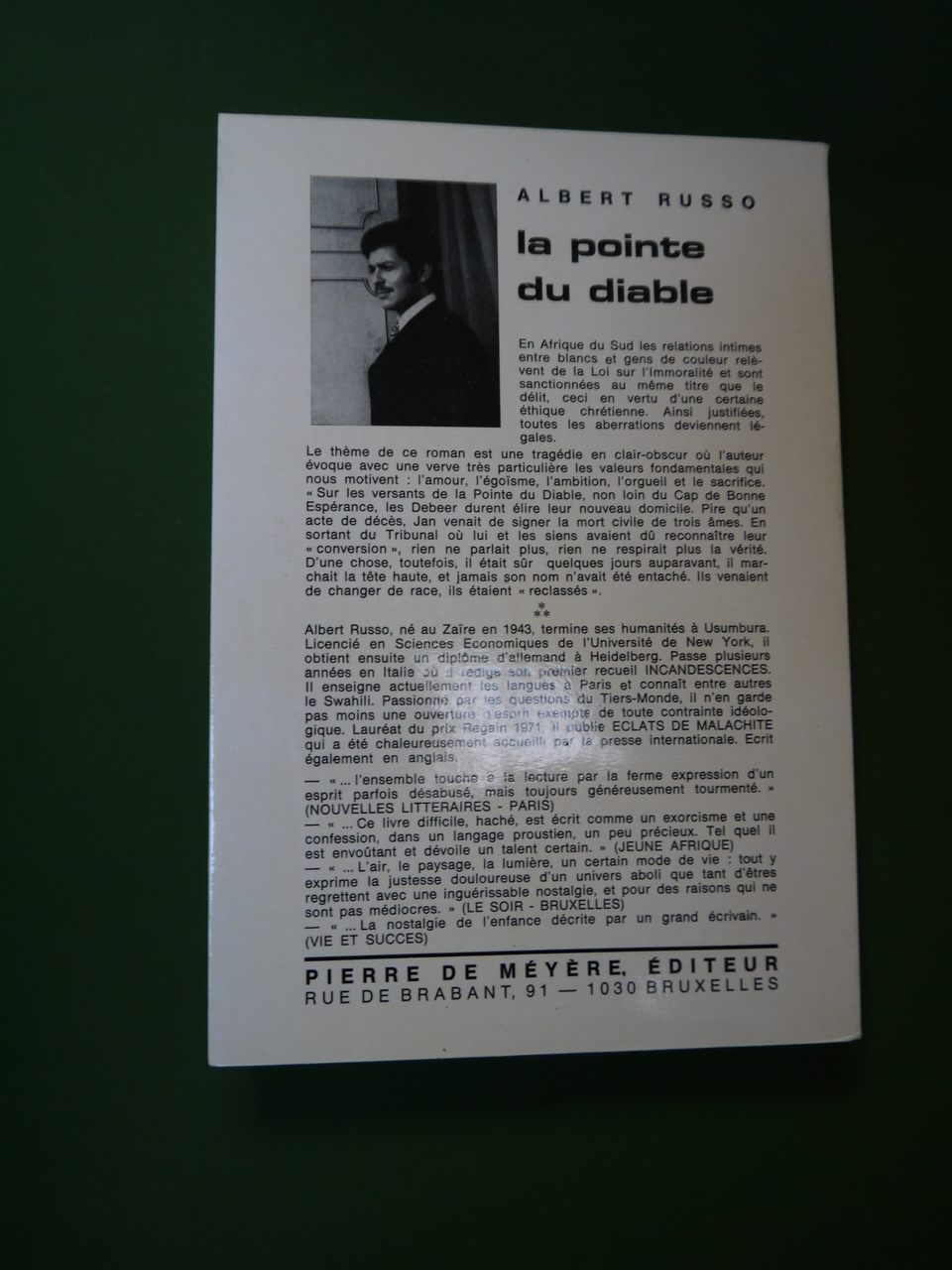 Un roman inspiré par la situation raciale en Afrique du sud. Voir le site de l’auteur ici.
