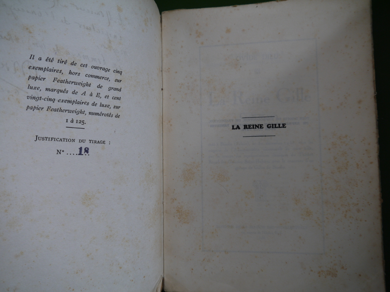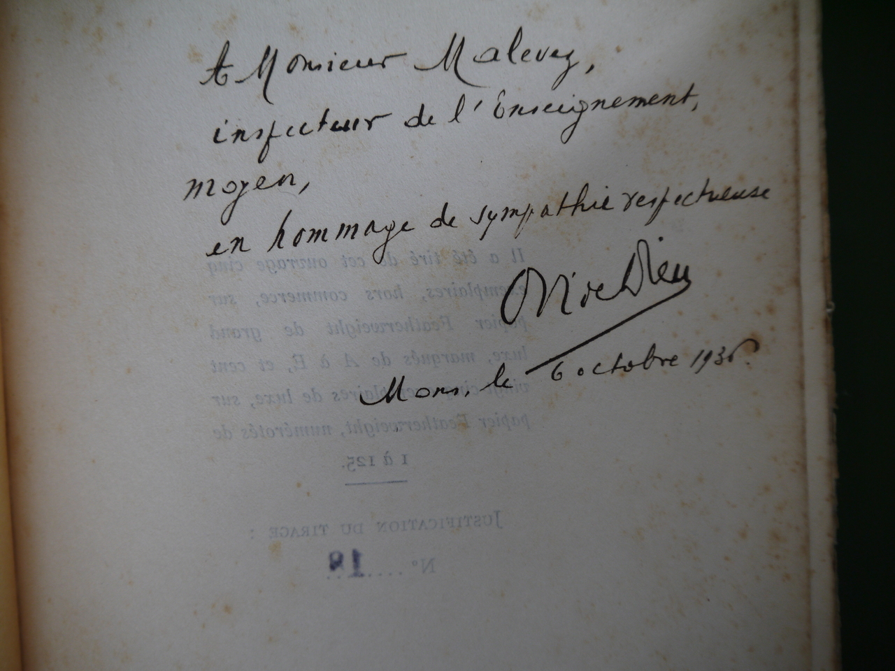Conte en vers en trois actes, créé à Binche – comme il se doit – en 1933. Un des 125 exemplaires de luxe, avec envoi de l’auteur.