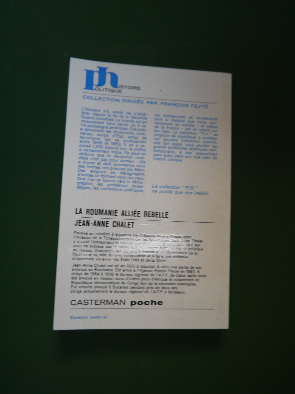 La Roumanie alliée rebelle, Jean-Anne Chalet, Casterman, 1972