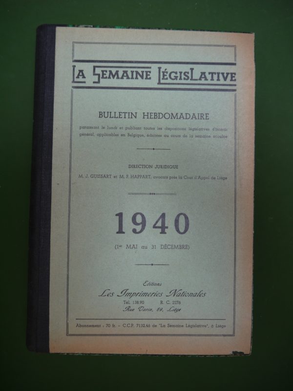 « Bulletin hebdomadaire paraissant le lundi et publiant toutes les dispositions législatives d’intérêt général, applicables en Belgique, édictées au cours de la semaine écoulée. » Il s’agit essentiellement des dispositions légales prises par les Secrétaires généraux des diverses administrations.