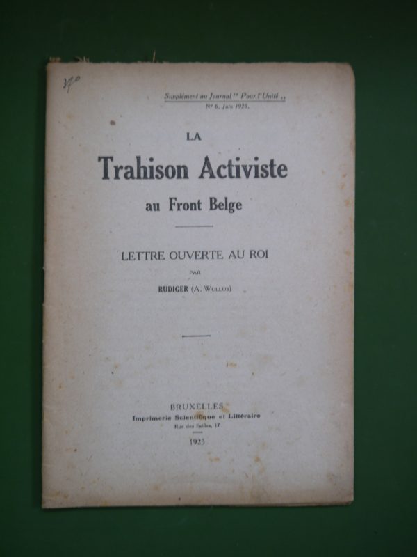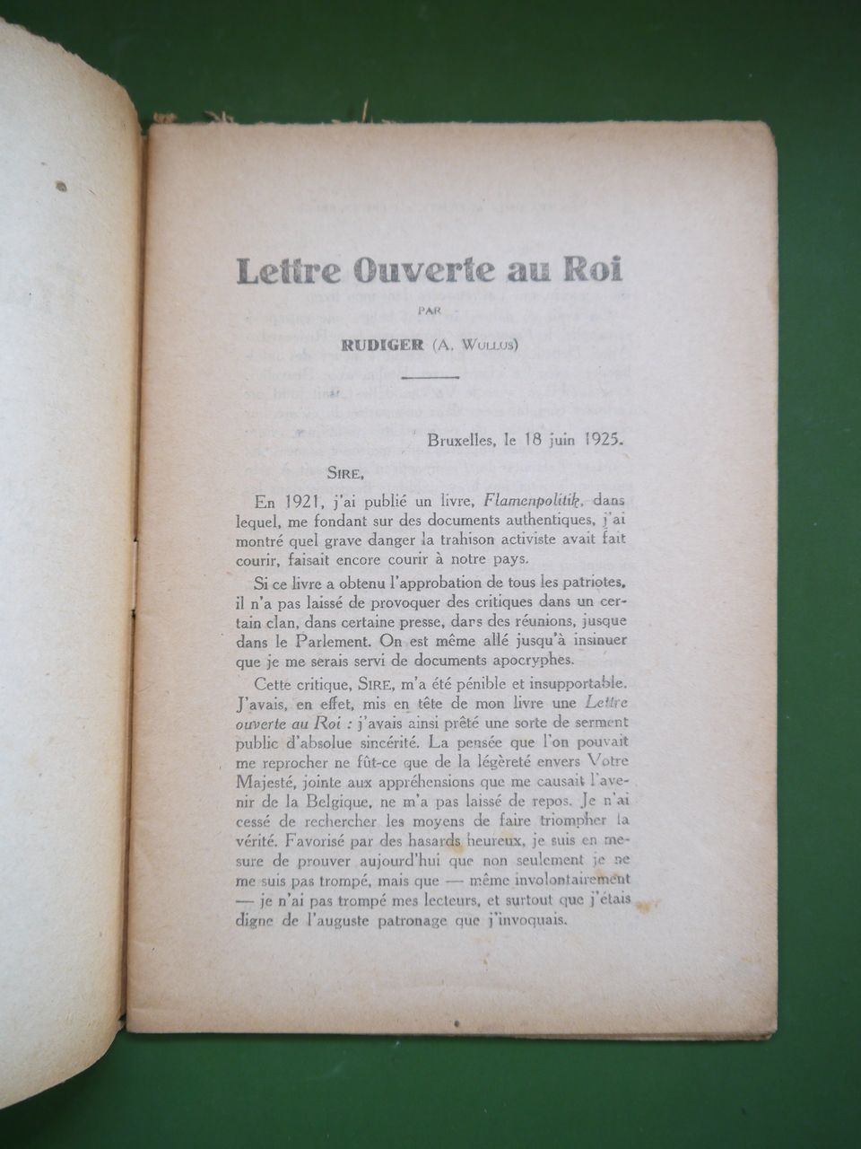 Une lettre ouverte au Roi, publiée comme supplément du journal de la « Ligue nationale pour l’unité belge ». Le Pourquoi pas? de l’époque évoque l’auteur ici.