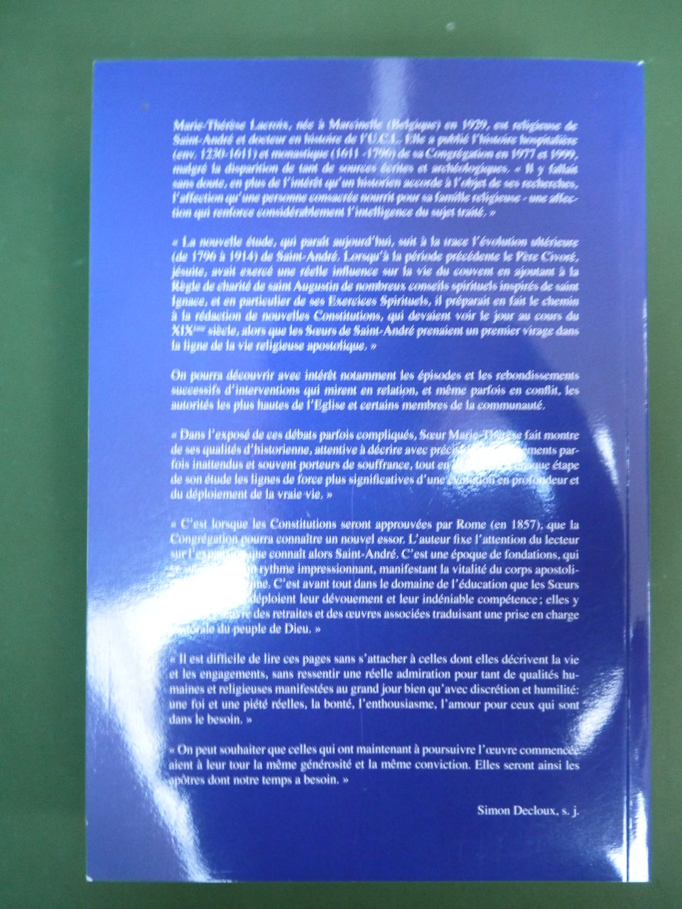 Après avoir étudié les périodes hospitalière (1230-1611) et monastique (1611-1796), Soeur Marie-Thérèse Lacroix s’attarde sur la vie de la communauté de St André (Tournai) durant la période du XIX siècle.