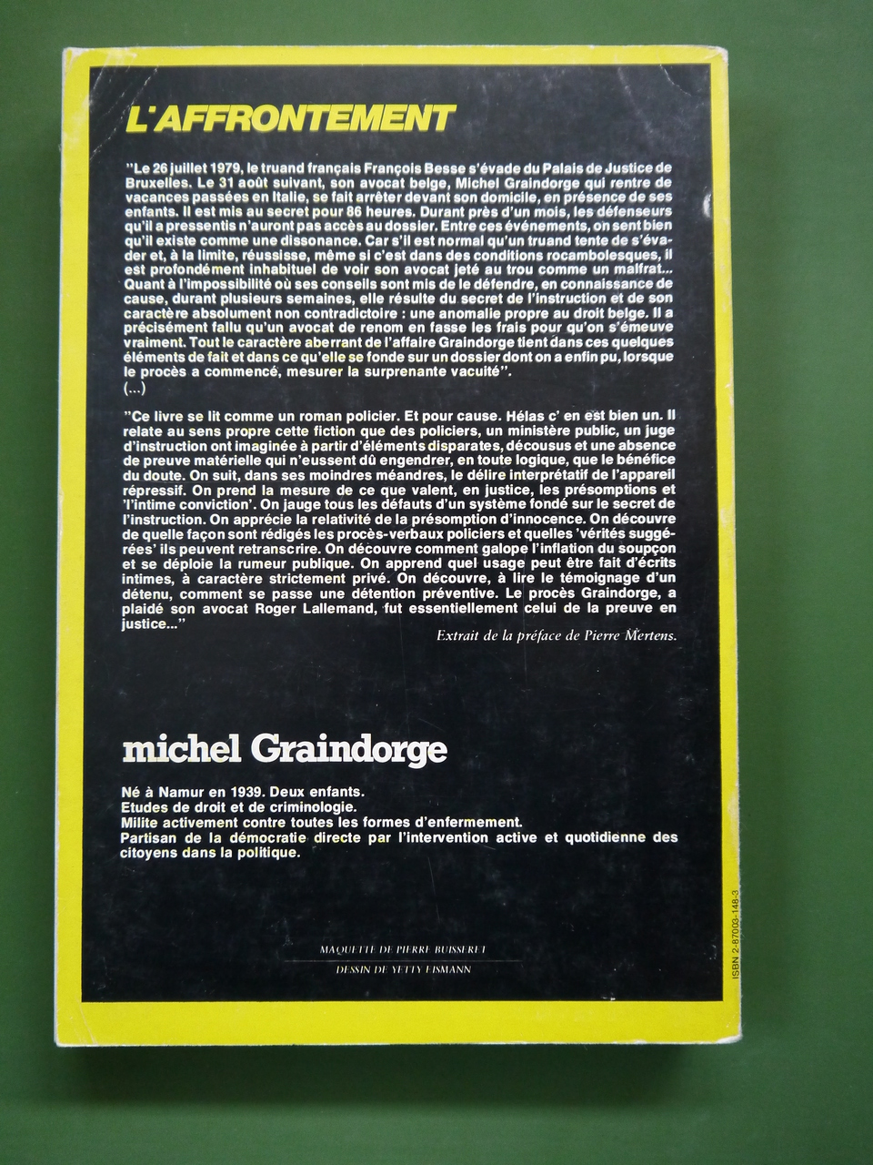 L’auteur, avocat célèbre, revient sur son arrestation et sa détention, suite à l’évasion d’un de ses clients, François Besse, du palais de justice de Bruxelles.