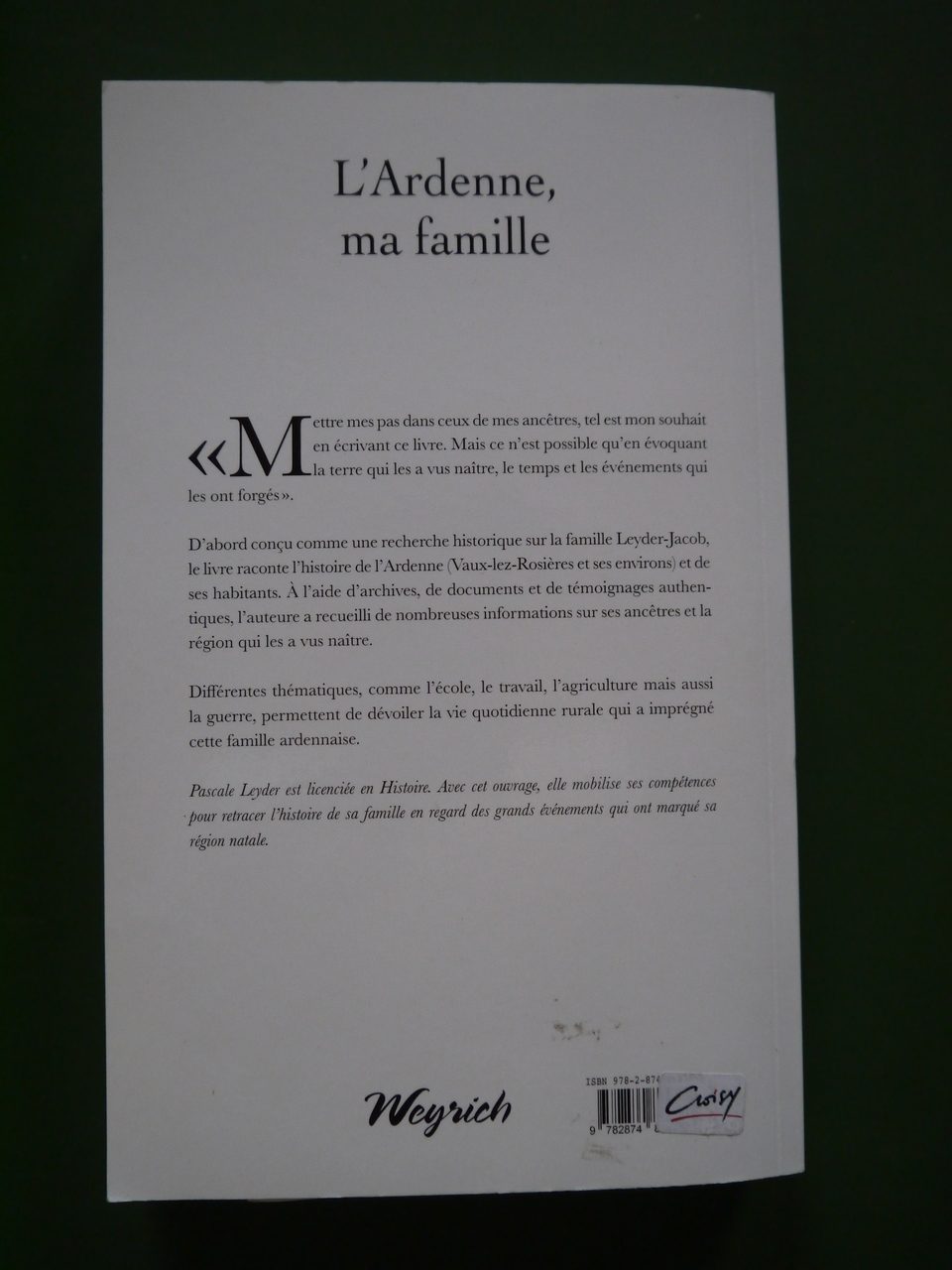 L’Ardenne ma famille, Pascale Leyder, Weyrich, 20149