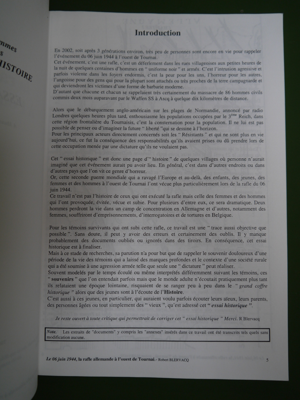 Le 6 juin 1944, la rafle allemande à l’ouest de Tournai, Robert Blervacq, auto-édition, 2002