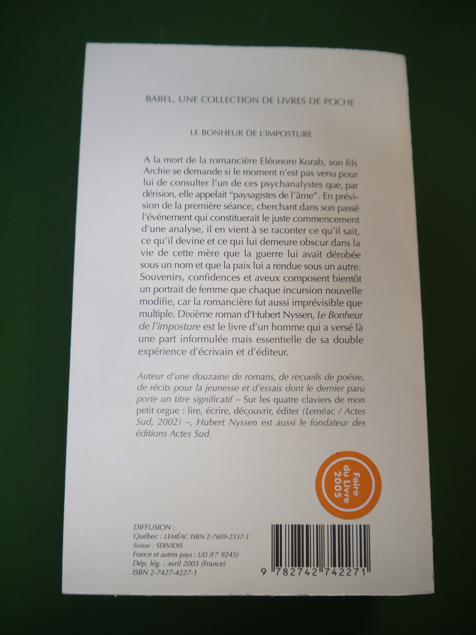 Soyez le premier à laisser votre avis sur “Le bonheur de l’imposture, Hubert Nyssen, Actes sud, 2003”