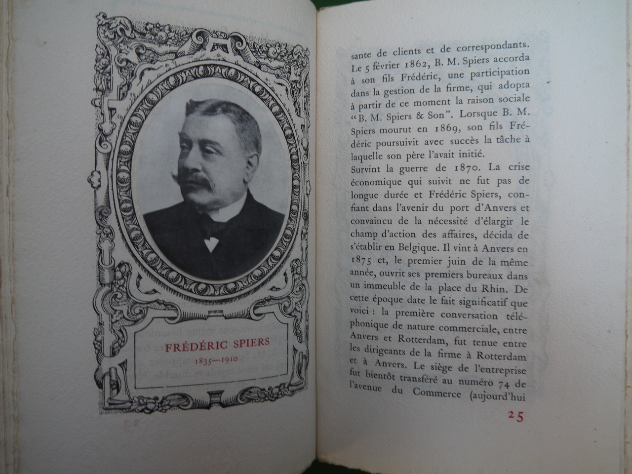 Un magnifique petit livre célébrant le centenaire de la firme d’origine anglaise Spiers & son, qui ouvrit sa filiale anversoise en 1875. Tiré à 1000 exemplaires.