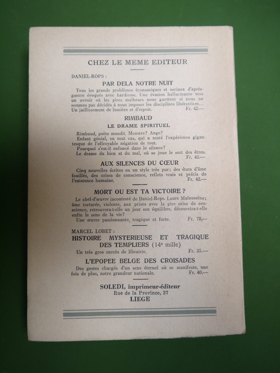 Un titre emprunté au catalogue Plon – paru là en 1938. Edition belge de temps de guerre, vraisemblablement.