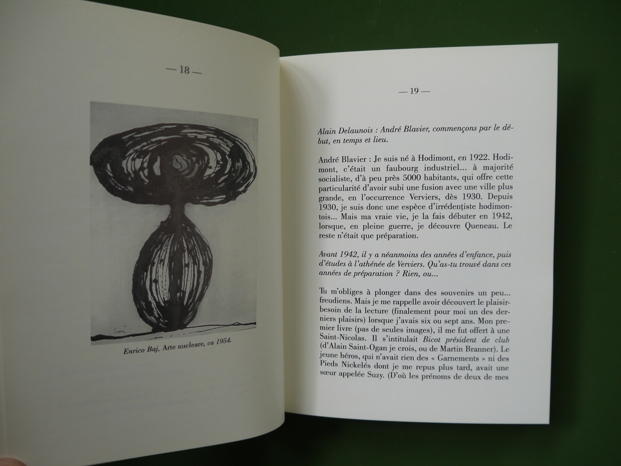 Joli petit ouvrage-catalogue d’expo dont le texte principal est un entretien entre André Blavier et Alain Delaunois.