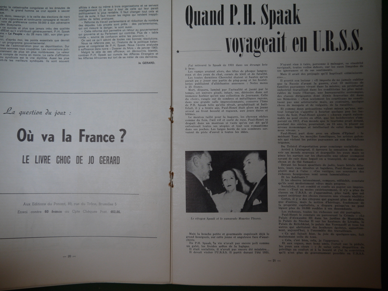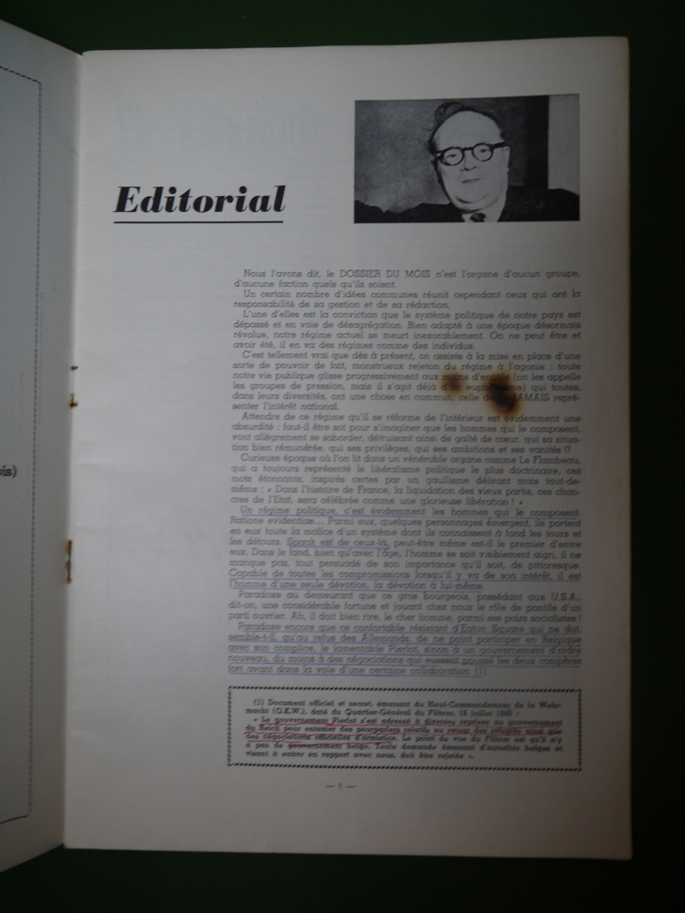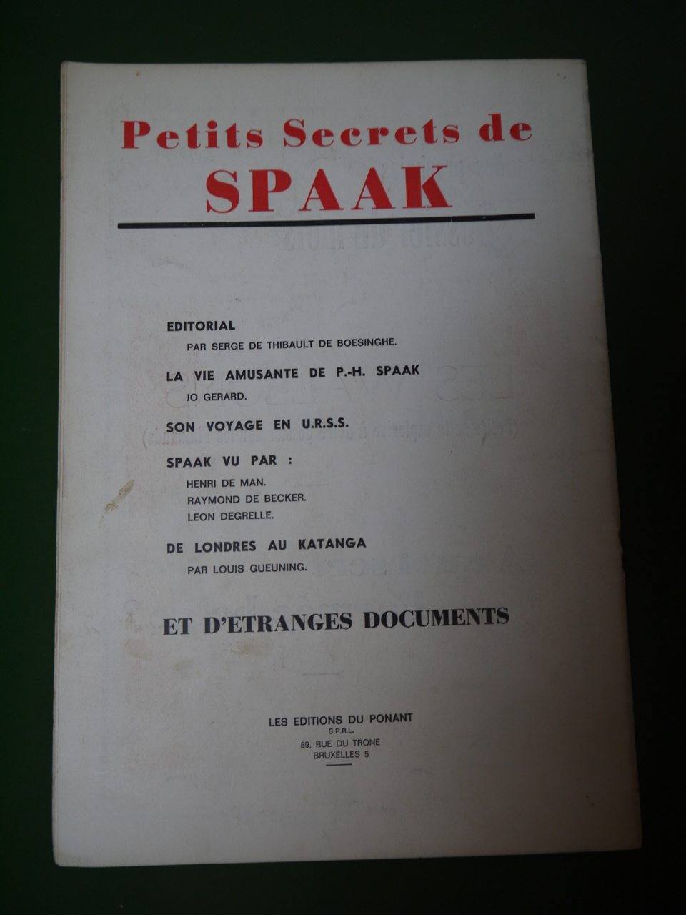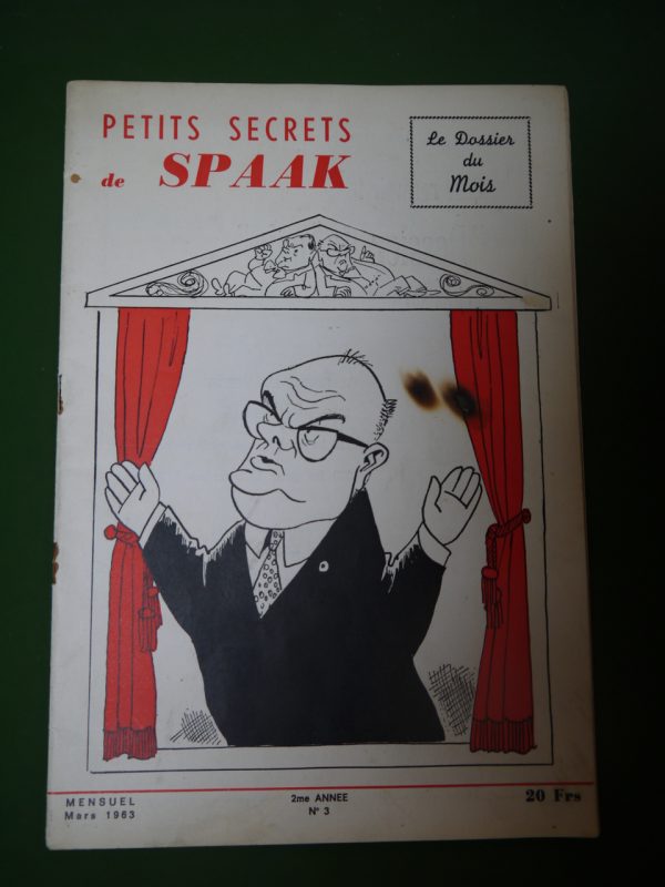 La bande à Jo Gérard s’en prend à une de ses têtes de turc préférées avec un « Petits secrets de Spaak » où même Degrelle est cité… Crayonnages et surlignages dans l’exemplaire proposé.