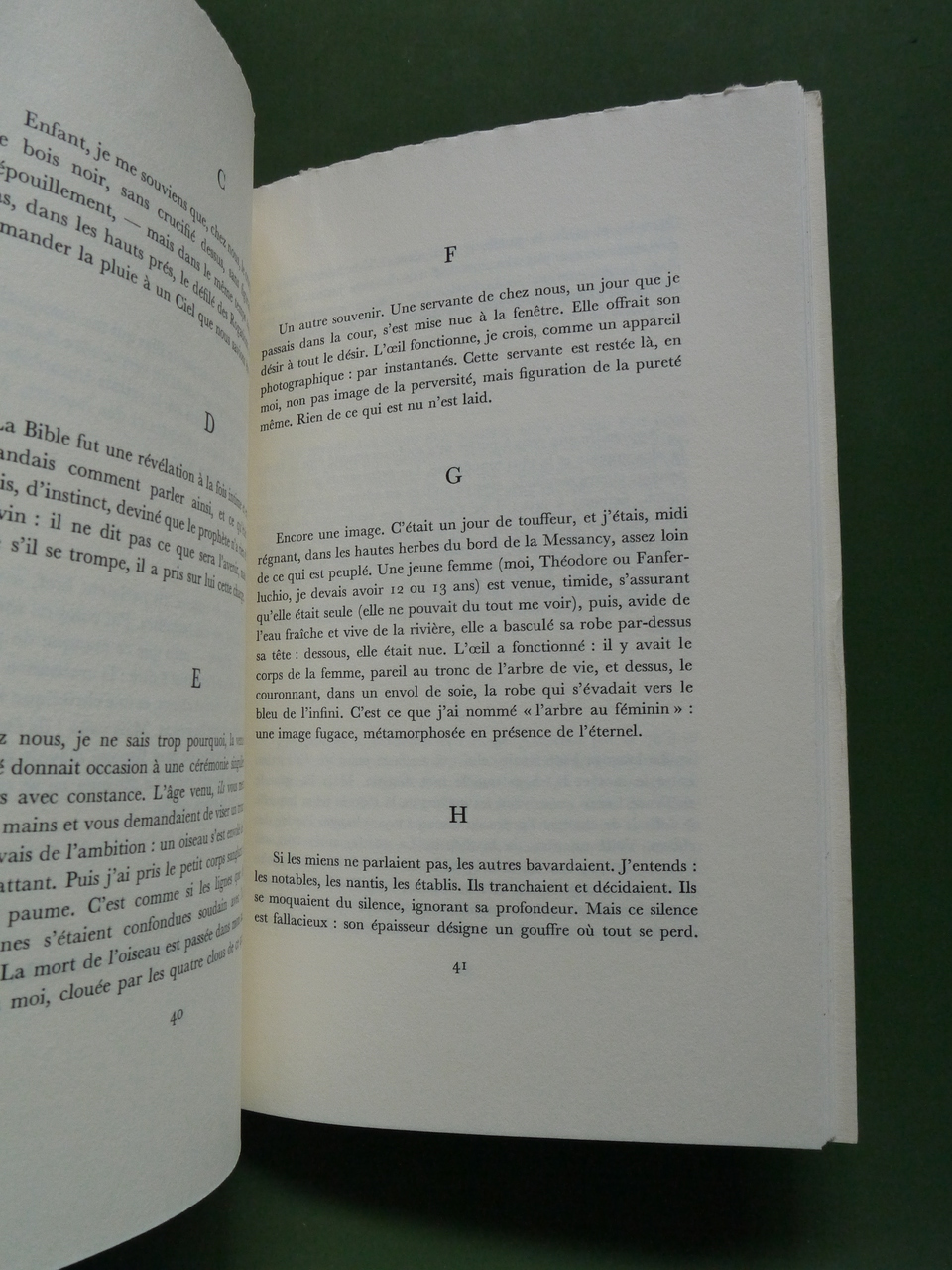 Un texte semble-t-il plutôt érotique. Exemplaire non-coupé. De l’auteur, une jolie citation à retenir: “Cultivez-vous, puis oubliez.”