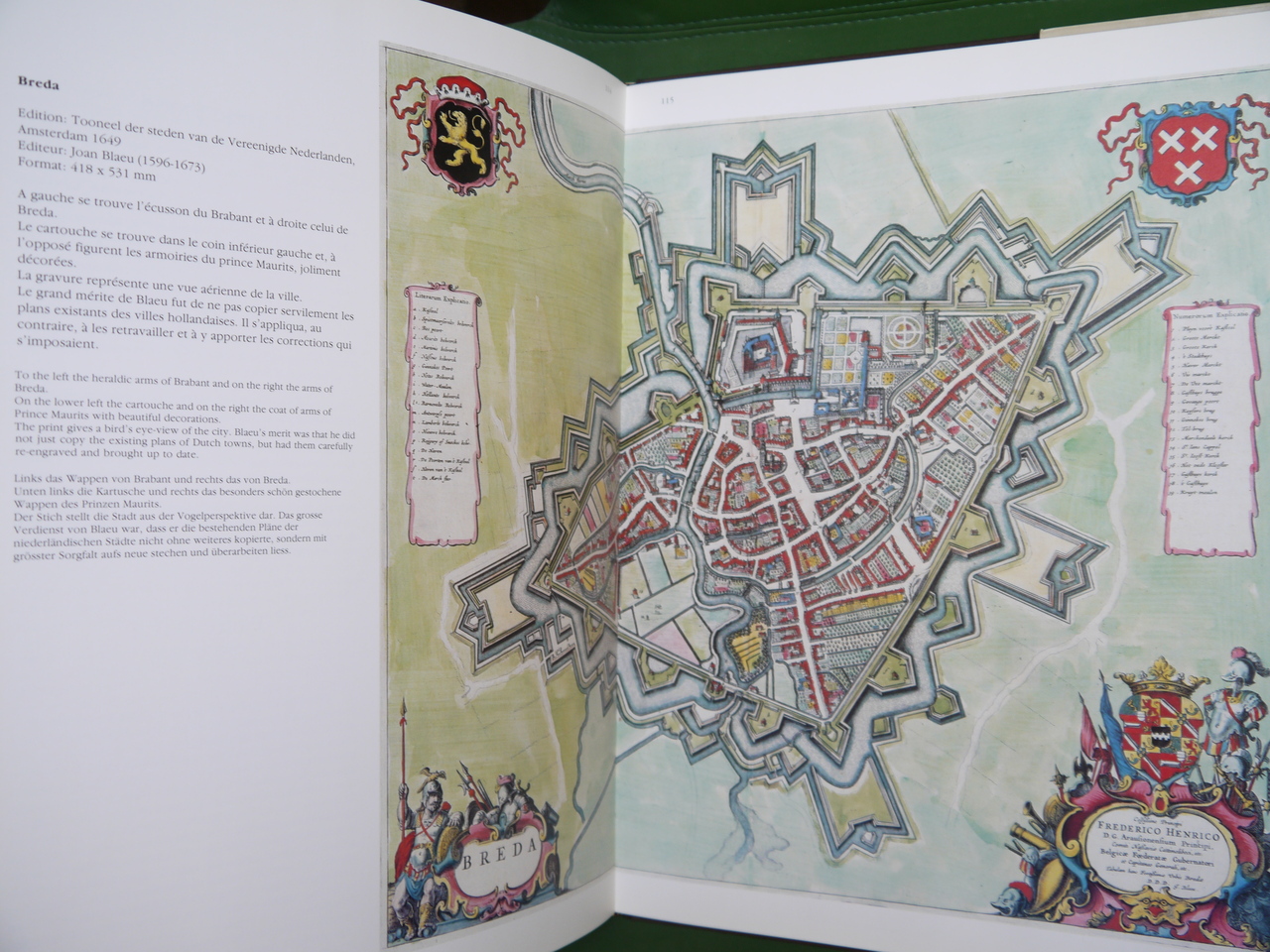 86 cartes, plans et vues de villes depuis le 16e siècle jusqu’à 1850.