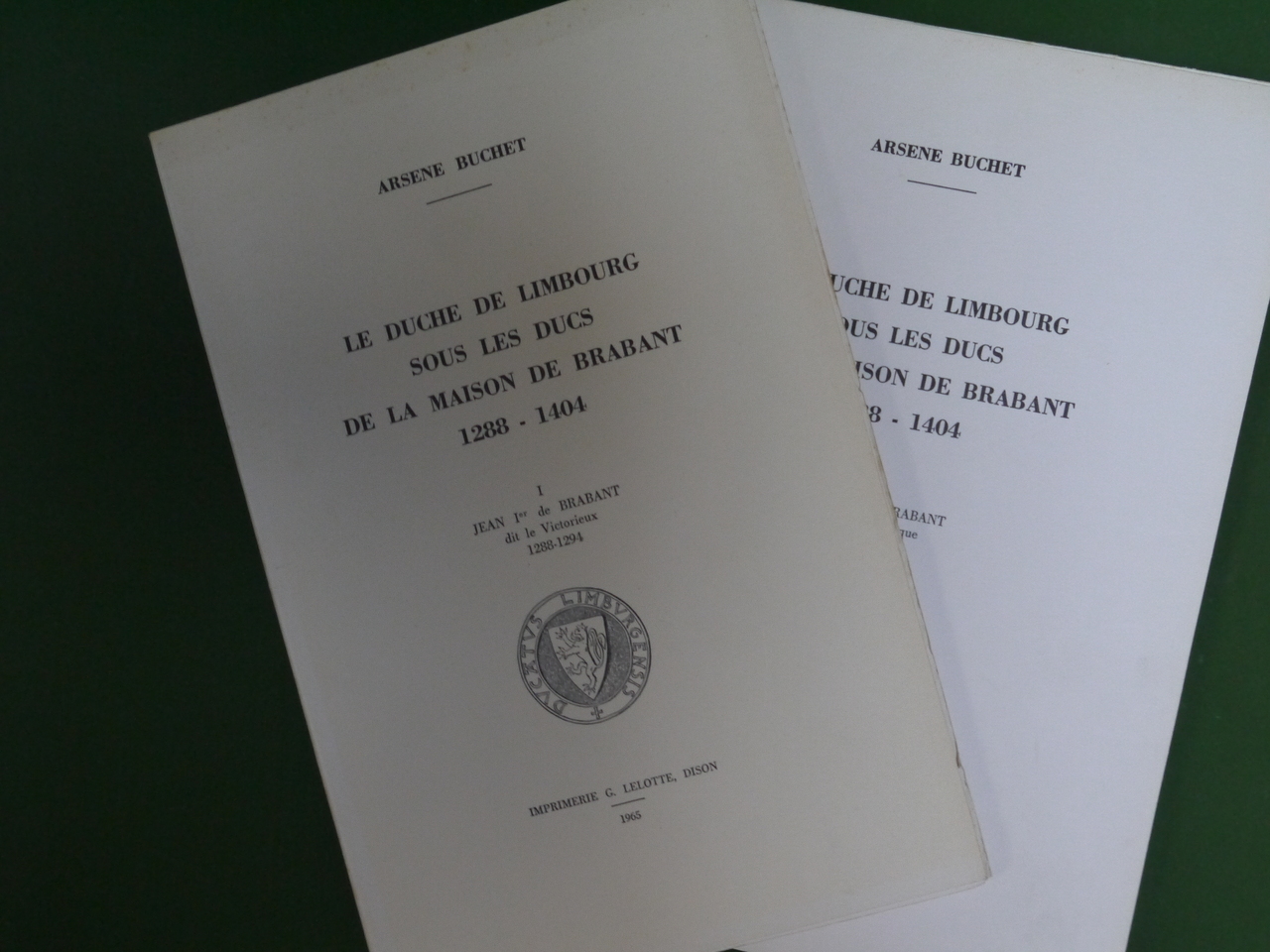 Le premier volume de cette série incomplète est consacré à Jean Ier de Brabant, dit le Victorieux (1288-1294), le second à son successeur Jean II de Brabant dit le Pacifique (1294-1312).
