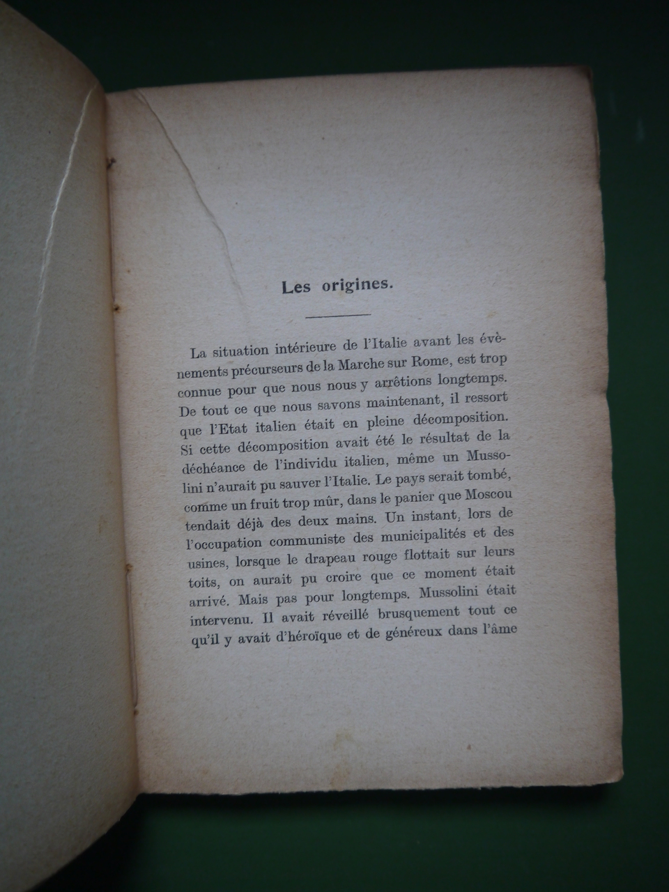 L’auteur, un universitaire néerlandais, détaille son admiration pour le fascisme italien. Il écrira par la suite quelques ouvrages antisémites. Traduction en français chez l’éditeur bruxellois « Social éditions ».