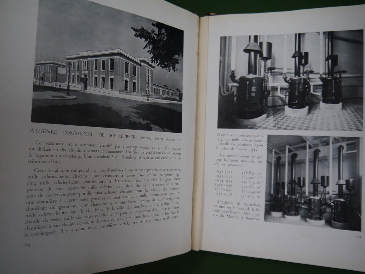 « Quelques réalisations modèles dans les domaines: du chauffage, de la grande cuisine, de la cuisine domestique, de l’eau chaude, de la réfrigération » dans des hôpitaux, écoles, restaurants, bâtiments publics… Avec de nombreuses publicités d’époque en fin de volume.