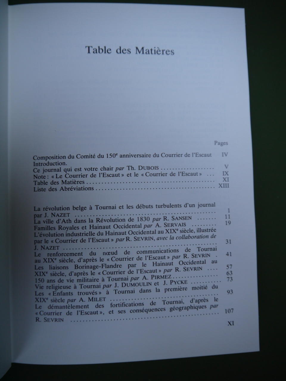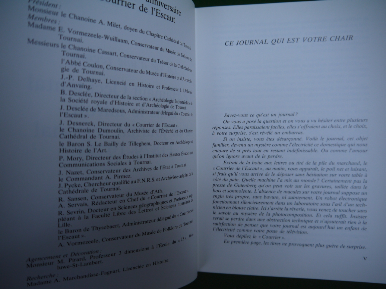 Célébration du 150e anniversaire du journal « le Courrier de l’Escaut ». Ce livre fait entre autres office de catalogue d’exposition…