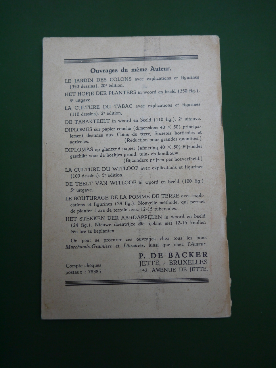 Un ouvrage rédigé pendant la Grande guerre pour aider tout un chacun à améliorer l’ordinaire. Pas de rapport avec le Congo ou toute autre colonie, donc… si ce n’est que l’auteur aurait déjà vendu cette brochure au Salon du colon de Koekelberg en 1916! Annotations dans l’exemplaire proposé.