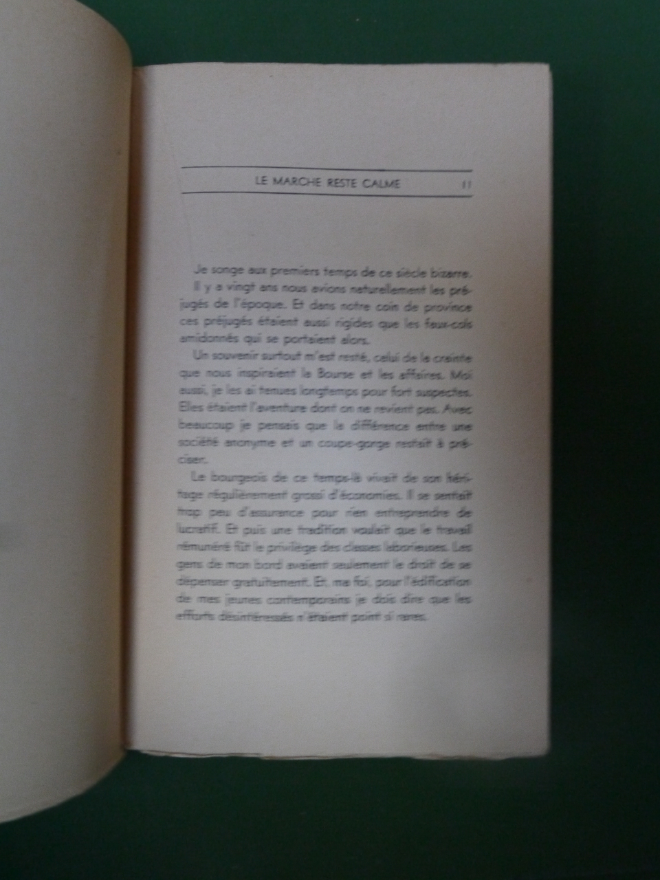 Le texte lui-même est daté de 1933, date à laquelle l’auteur rejoignait Rex – le parti… qu’il quitta en 1937. Le texte semble se moquer du capitalisme et de la spéculation ambiantes.